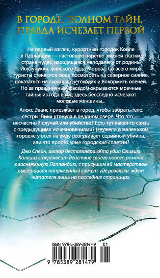 Алексу Эвансу, сотруднику лондонской лоббистской фирмы, сообщают, что его сестра Вики утонула в ледяном озере в Лапландии - видимо, в результате несчастного случая. На зимнем курорте Коппе, где работала Вики, он знакомится с Агатой Коскинен, начальницей местной полиции, которая уверена: речь идет об убийстве! Алекс узнает, что это не первое исчезновение женщины в маленьком северном городке, и, подозревая, что от него что-то скрывают, пытается самостоятельно докопаться до истины. Распутывая клубок тайн и интриг, он начинает по-новому относиться не только к сестре, но и к себе самому.| Издательство | Издательство АЗБУКА ООО |
