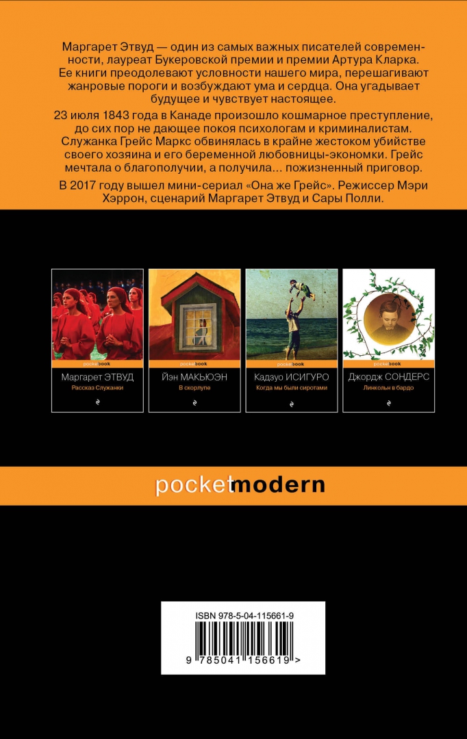 23 июля 1843 года в Канаде произошло кошмарное преступление, до сих пор не дающее покоя психологам и криминалистам. Служанка Грейс Маркс обвинялась в крайне жестоком убийстве своего хозяина и его беременной любовницы-экономки. Грейс была необычайно красива и очень юна - ей не исполнилось еще и 16 лет. Дело осложнялось тем, что она предложила три различные версии убийства, тогда как ее сообщник - лишь две. Но он отправился на виселицу, а ей всю жизнь предстояло провести в тюрьме и сумасшедшем доме - адвокат сумел доказать присяжным, что она слабоумна. Грейс Маркс вышла на свободу 29 лет спустя. Но была ли она поистине безумна? Чей пагубный дух вселился в ее тело? Кто она - злодейка и искусительница, зачинщица преступления и подлинная убийца? Или же невольная жертва, принужденная угрозами к молчанию? Подлинная личность исторической Грейс Маркс остается загадкой, лоскутным одеялом, облаком домыслов и сенсационных спекуляций.