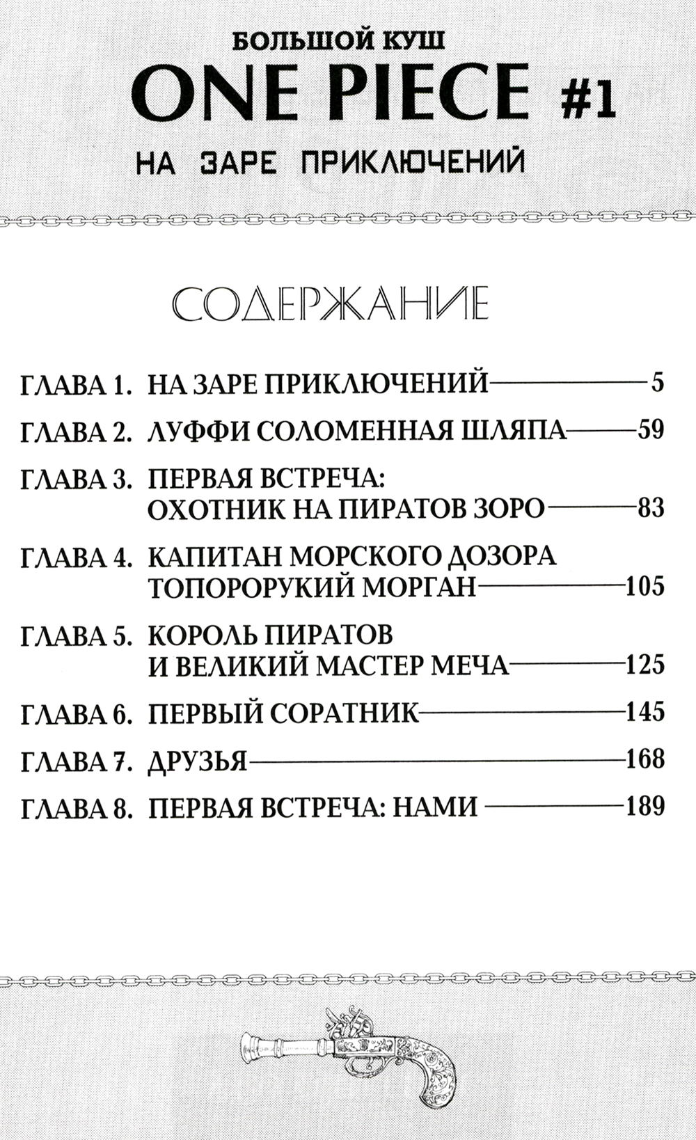 Комплект состоит из 1-4 тома манги Э. Ода «One Piece. Большой куш». Голд Роджер - король пиратов, добившийся за свою жизнь богатства, славы и власти, спрятал где-то на просторах этого мира загадочное сокровище, которое все называют «One Piece». После смерти Роджера множество смельчаков кинулись на поиски этого большого куша. И наступила великая эпоха пиратов! Вот и паренек по имени Луффи, живущий в маленькой прибрежной деревушке, мечтает стать пиратом. Еще в детстве он ненароком съел плод резина-резина и приобрел невероятные способности. Повзрослев, он покидает родные места в погоне за величайшим сокровищем! Во втором томе обретя первых соратников в лице Зоро и Нами, новоявленный капитан пиратской шайки Манки Д. Луффи продолжает свой путь в погоне за легендарным сокровищем «One Piece»! После схватки с Клоуном Багги команда причаливает к небольшой деревушке, где они встречают гордого врунишку по имени Усопп. Но совершенно неожиданно Луффи и его новый знакомый раскрывают страшную тайну: всеми любимый в деревне дворецкий Курахадор, заботящийся о больной девочке Кае, оказывается грозным пиратом, который вот-вот приведет в действие свой ужасающий план… В третьем томе главный тиран Ист-Блу дон Криг твердо намерен захватить плавучий ресторан «Барати» и ради своей цели он готов пойти на самые гнусные трюки. Силы неравны, но Луффи отступать не намерен: резиновый паренек будет биться до последней капли крови. К счастью, на его стороне Санджи - а этот ловелас не только хороший повар, но и боец. Тем временем Нами прибывает в небольшую деревушку Кокояси, которая находится под гнетом пирата-рыбочеловека по имени Арлонг. С ним девушку связывает мрачное прошлое, полное слез и боли… В четвертом томе увидев горькие слезы Нами, Луффи решает заступиться за девушку и бросить вызов самому Арлонгу. Но если за спиной кровожадного захватчика стоит могущественная раса, то на стороне паренька в соломенной в шляпе - обычные люди, какими бы способными и умелыми они ни были. Сможет ли команда новоявленных пиратов тягаться с созданиями, которые считают себя венцом природы? Или же битва в «Арлонг-Парке» поставит точку в путешествии Луффи и его соратников, а их мечта попасть на Гранд-Лайн так и останется всего лишь мечтой?| Издательство | Азбука |