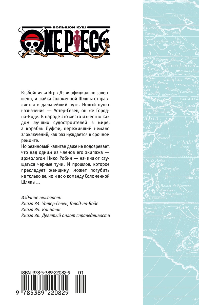 Разбойничьи Игры Дэви официально завершены, и шайка Соломенной Шляпы отправляется в дальнейший путь. Новый пункт назначения - Уотер-Севен, он же Город-на-Воде. В народе это место известно как дом лучших судостроителей в мире, а корабль Луффи, переживший немало злоключений, как раз нуждается в срочном ремонте. Но резиновый капитан даже не подозревает, что над одним из членов его экипажа - археологом Нико Робин - начинают сгущаться черные тучи. И прошлое, которое преследует женщину, может погубить не только ее, но и всю команду Соломенной Шляпы...| Издательство | Азбука |