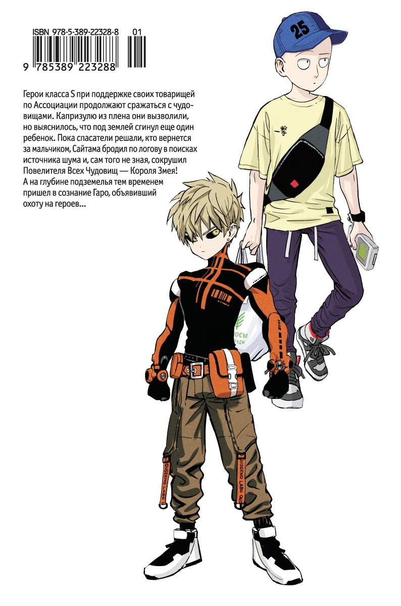 Герои класса S при поддержке своих товарищей по Ассоциации продолжают сражаться с чудовищами. Капризулю из плена они вызволили, но выяснилось, что под землей сгинул еще один ребенок. Пока спасатели решали, кто вернется за мальчиком, Сайтама бродил по логову в поисках источника шума и, сам того не зная, сокрушил Повелителя Всех Чудовищ - Короля Змея! А на глубине подземелья тем временем пришел в сознание Гаро, объявивший охоту на героев... В книгу вошли главы 119-131, а также бонусные.| Издательство | Азбука |