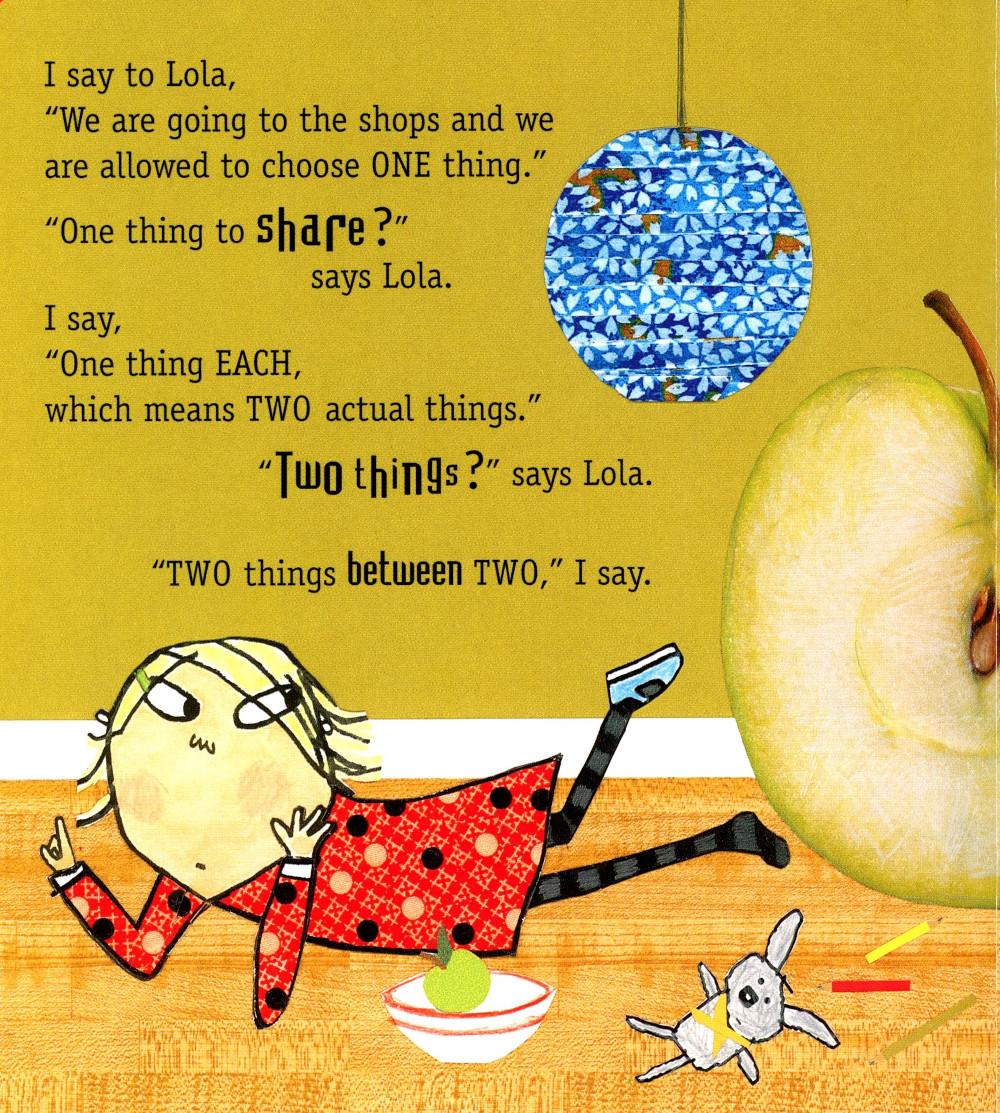 Charlie and Lola are going to the store, and their mother says they may choose one thing. «One thing to share?» Lola asks. No, one thing each, explains Charlie, or two actual things between two. Lola is nine minutes late getting ready, and on the way, there are ladybugs to count and maybe a squillion leaves on a tree. With Lola hilariously bending everyday numbers to her will and Charlie providing the (somewhat exasperated) voice of reason, fans new and old will be hard-put to resist these utterly appealing siblings.| Издательство | Orchard Book |