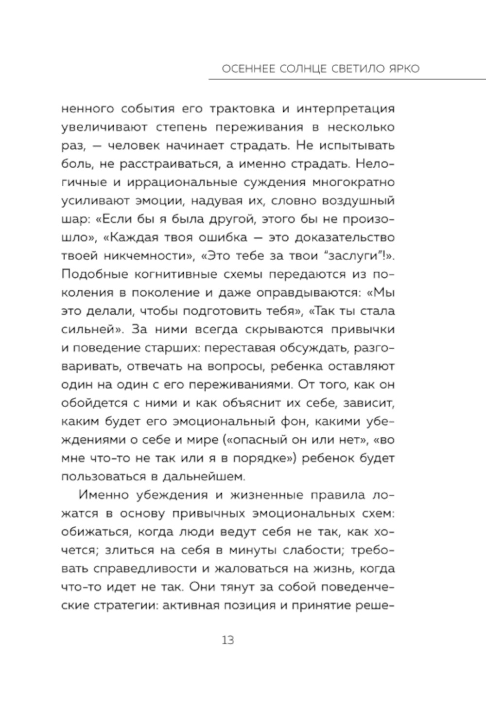 Бывает очень сложно посмотреть правде в глаза: обернуться назад, чтобы осмыслить весь свой опыт и понять, что делает тебя тобой. Однако именно встреча с собой позволяет отпустить прошлое и двигаться дальше. Автор этой книги погружается в воспоминания и встречается с разными обстоятельствами, которые трудно назвать нормальными, но которые знакомы многим: - постоянные ссоры родителей; - отсутствие признания; - обесценивание и пренебрежение со стороны близких; - бесконечные преграды на пути к заветной мечте. Ее истории могут стать для вас зеркалом: в них можно увидеть то, что созвучно вашему пути, а комментарии психолога помогут задать себе правильные вопросы и найти на них ответы.| Издательство | Эксмо |