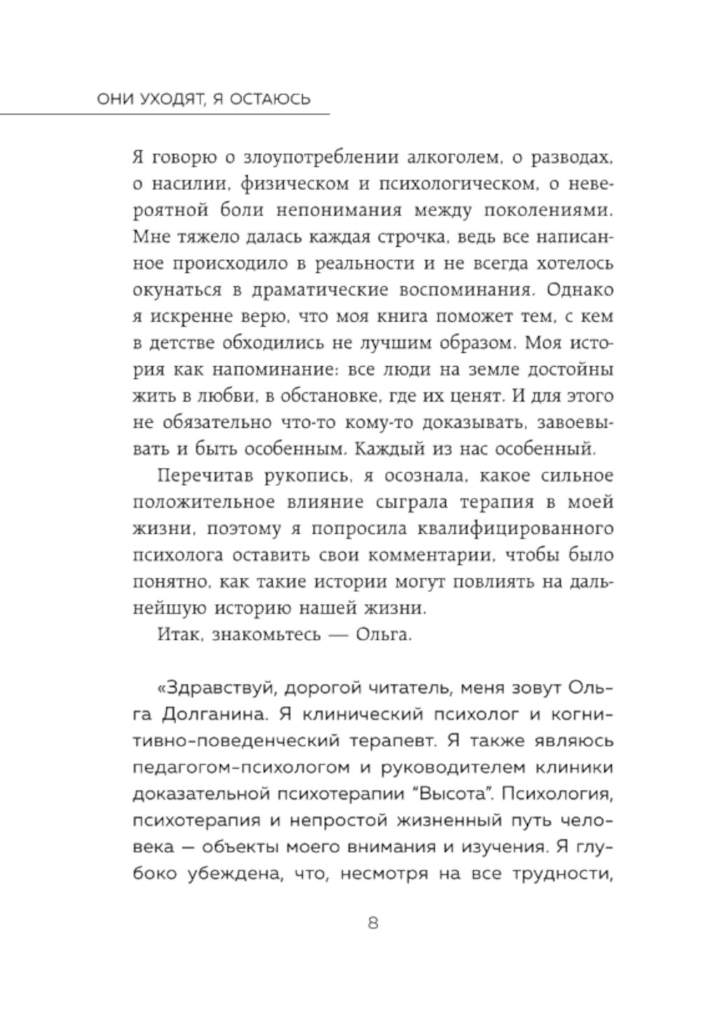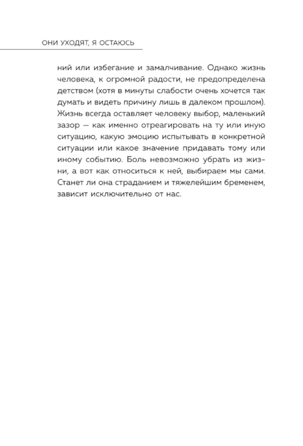 Аннотация: Они уходят, я остаюсь. Как оставить в прошлом детские травмы, поверить в себя и исполнить мечты