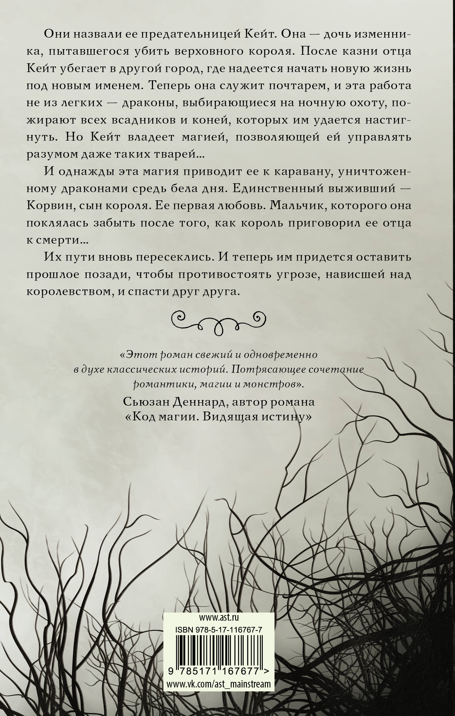 Они назвали ее предательницей Кейт. Она - дочь изменника, пытавшегося убить верховного короля. После казни отца Кейт убегает в другой город, где надеется начать новую жизнь под новым именем. Теперь она служит почтарем, и эта работа не из легких - драконы, выбирающиеся на ночную охоту, пожирают всех всадников и коней, которых им удается настигнуть. Но Кейт владеет магией, позволяющей ей управлять разумом даже таких тварей… И однажды эта магия приводит ее к каравану, уничтоженному драконами средь бела дня. Единственный выживший - Корвин, сын короля. Ее первая любовь. Мальчик, которого она поклялась забыть после того, как король приговорил ее отца к смерти… Их пути вновь пересеклись. И теперь им придется оставить прошлое позади, чтобы противостоять угрозе, нависшей над королевством, и спасти друг друга.| Издательство | Издательство "АСТ" |