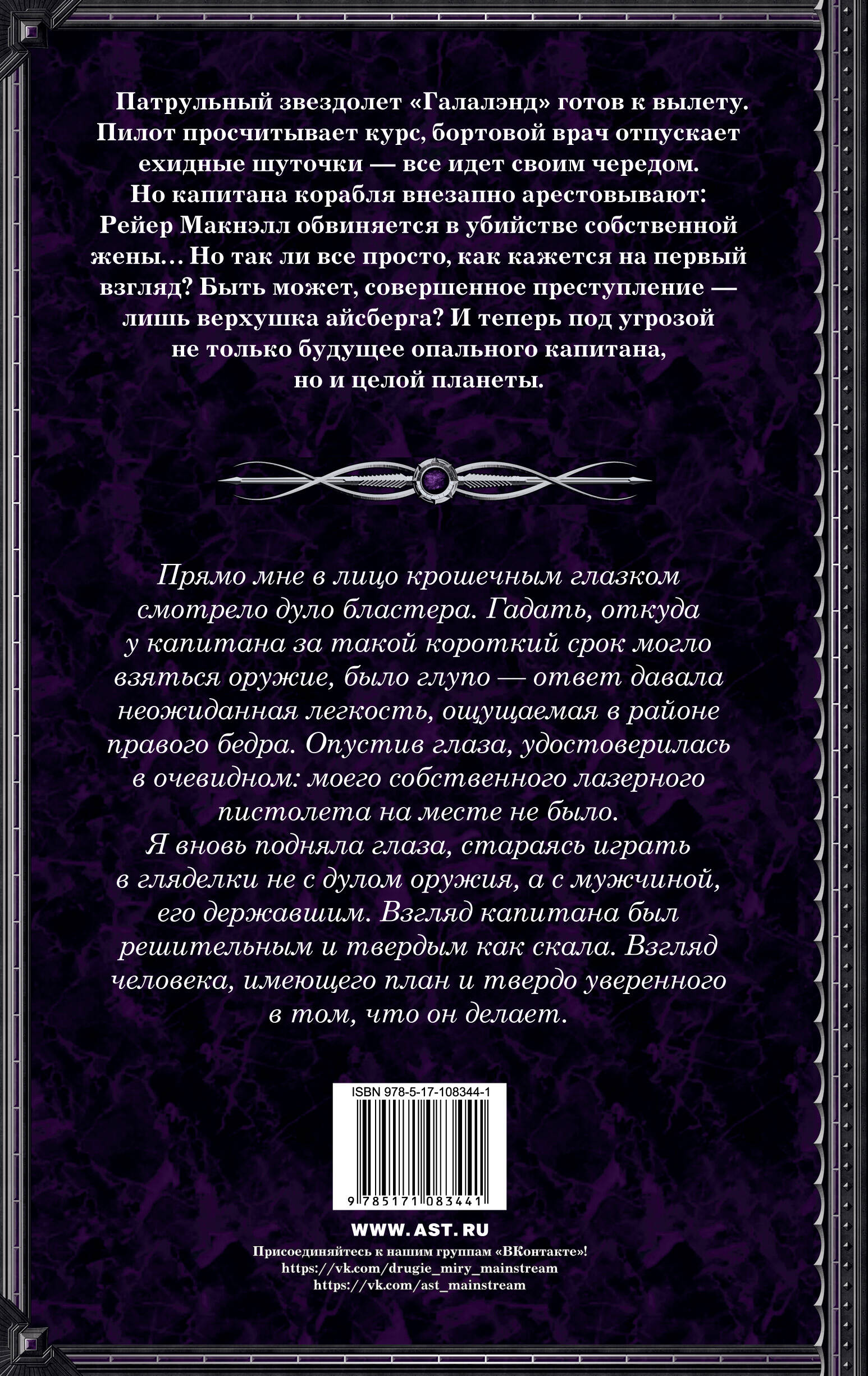 Патрульный звездолет "Галалэнд" готов к вылету. Пилот просчитывает курс, бортовой врач отпускает ехидные шуточки - все идет своим чередом. Но капитана корабля внезапно арестовывают: Рейер Макнэлл обвиняется в убийстве собственной жены… Но так ли все просто, как кажется на первый взгляд? Быть может, совершенное преступление - лишь верхушка айсберга? И теперь под угрозой не только будущее опального капитана, но и целой планеты.| Издательство | ИЗДАТЕЛЬСТВО "АСТ" |