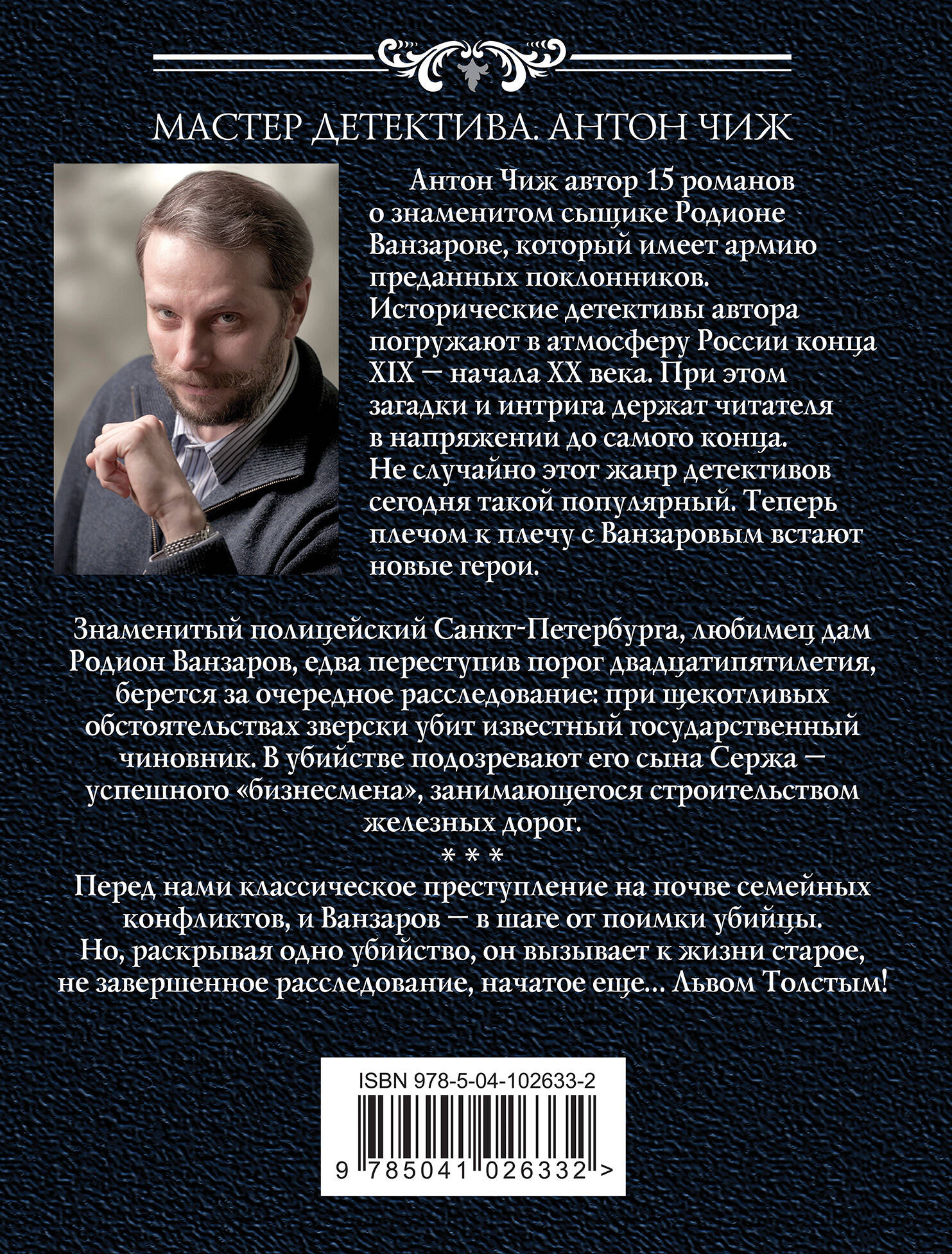 Этот роман - из цикла Антона Чижа про сыщика Родиона Ванзарова - стоит особняком в серии. Он написан по сюжету классического произведения Льва Толстого «Анна Каренина». «Нетфликс» вовсю интригует нас грядущей экранизацией Толстого, а исторический детектив тоже не хочет оставаться в стороне: какой могла бы быть альтернативная версия «Карениной», вмешайся в нее лучший сыщик Петербургской полиции? Стильное черное оформление с орнаментом.| Издательство | ООО "Издательство "Эксмо" |