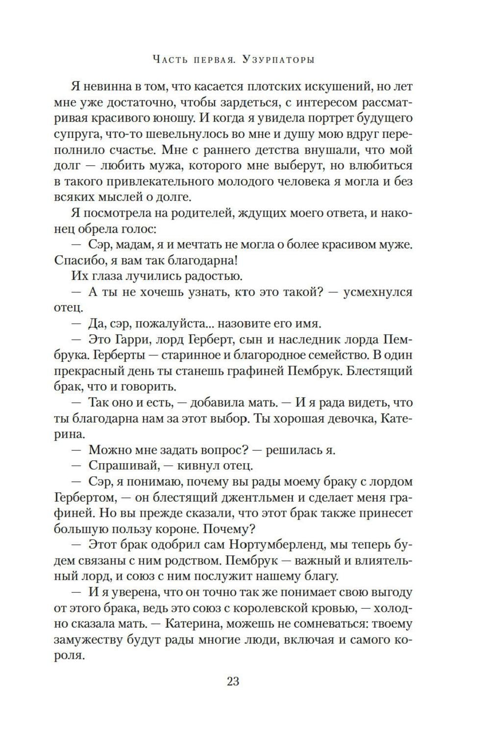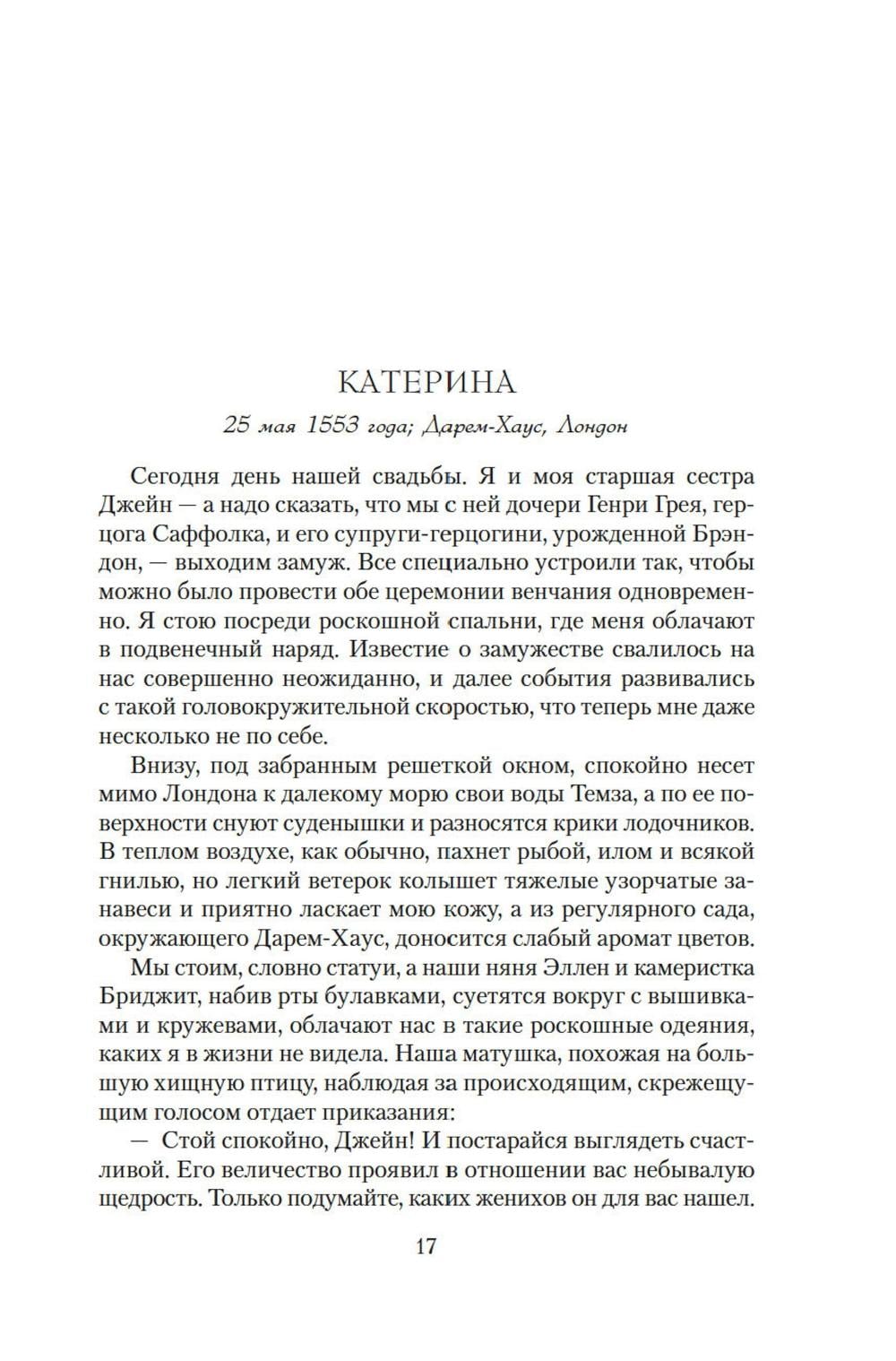 Юная Катерина Грей - младшая сестра Джейн, казненной королевы, правившей Англией всего девять дней. Девушка ждет от жизни только хорошего: она богата, невероятно красива и страстно влюблена в своего жениха, который также с нетерпением ждет дня их свадьбы. Но вскоре Катерина понимает: кровь Тюдоров, что течет в ее жилах, - самое настоящее проклятие. Она случайно находит дневник Катерины Плантагенет, внебрачной дочери печально известного Ричарда Третьего, и узнает, что ее тезка, жившая за столетие до нее, отчаянно пыталась разгадать одну из самых страшных тайн лондонского Тауэра. Тогда Катерина Грей предпринимает собственное расследование, даже не предполагая, что и ей в скором времени тоже предстоит оказаться за неприступными стенами этой мрачной темницы...| Издательство | Азбука |