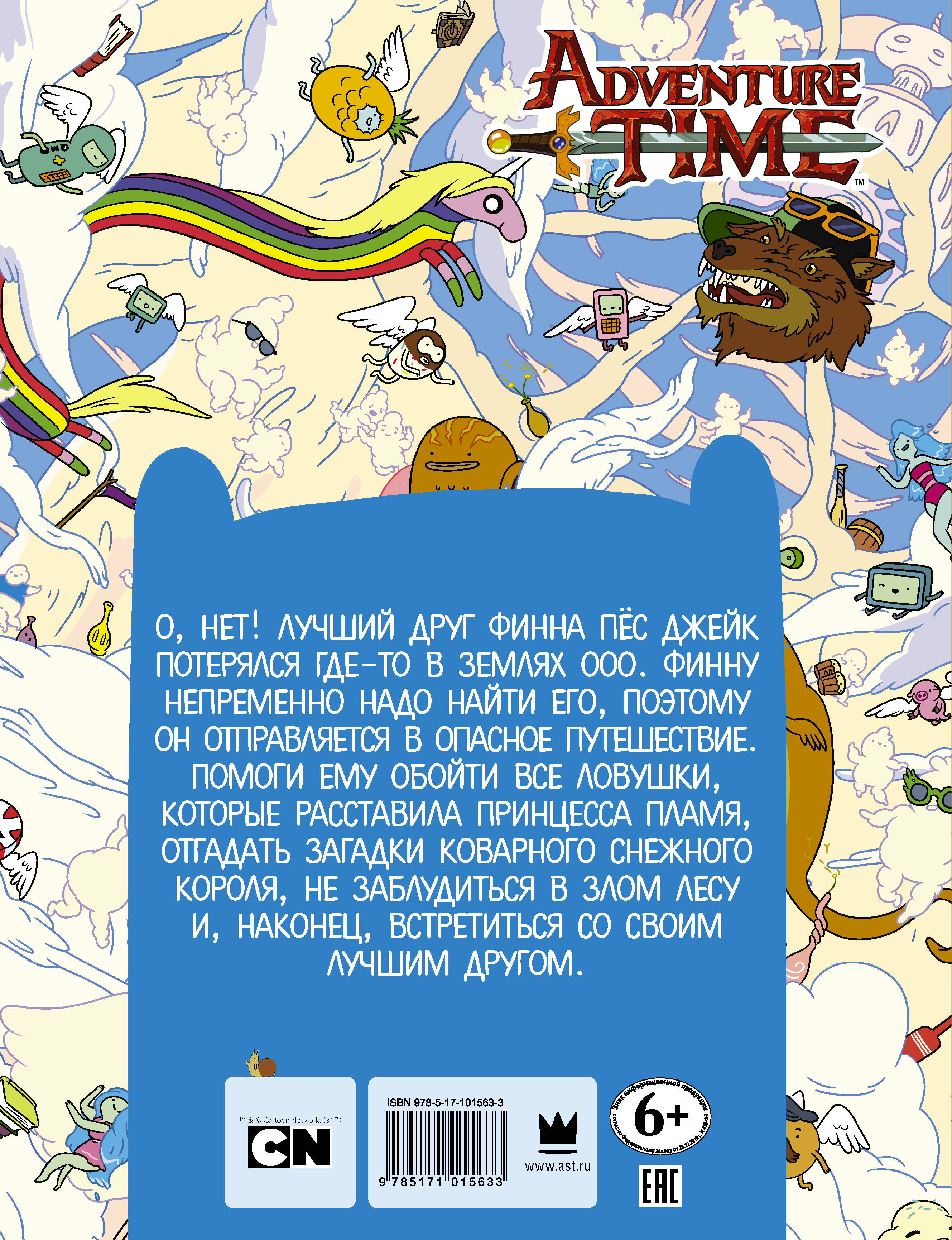 О, нет! Лучший друг Финна пёс Джейк потерялся где-то в Землях Ооо. Финну непременно надо найти его, поэтому он отправляется в опасное путешествие. Помоги ему обойти все ловушки, которые расставила Принцесса Пламя, отгадать загадки коварного Снежного Короля, не заблудиться в Злом Лесу и, наконец, встретиться со своим лучшим другом.| Издательство | Издательство "АСТ" |