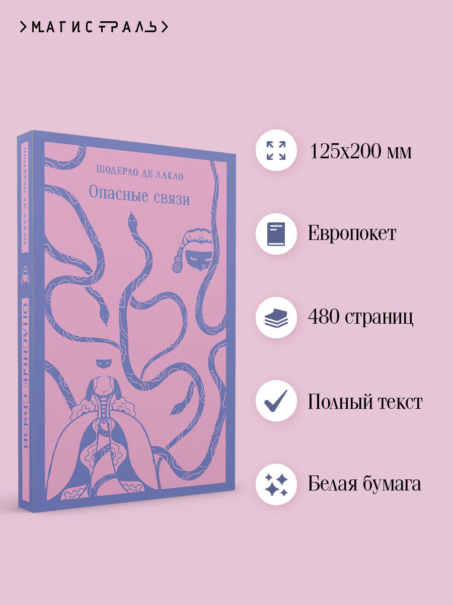 Страсть, соблазн, месть, тайны, желания - это все "Опасные связи". Франция XVIII столетия. Молоденькую Сесиль мать забирает из монастыря, чтобы выдать замуж. А парочка изысканно-развращенных негодяев - маркиза де Мертей и виконт де Вальмон - делают все, чтобы осуществить свои коварные планы. Ломают юной девушке жизнь, расстраивая ее свадьбу. Развращают замужнюю богобоязненную леди, демонстрируя знание всех особенностей и тонкостей соблазнения. Настоящая школа по покорению сердец. Автор в предисловии приводит мнение одной из матерей о книге: «Я считала бы, что окажу услугу своей дочери, если дам ей ее прочесть в день ее замужества». «Опасные связи» - роман, вышедший в 1782 году в Париже, стал самым читаемым и самым обсуждаемо-скандальным. Этот шедевр мировой литературы и сейчас не потерял своей остроты. Зимой 2022 г. выходит сериал Sratz по мотивам произведения, он будет приквелом к основной истории романа, действие будет вращаться вокруг маркизы де Мертей и виконта де Вальмона, двух молодых любовников, выросших в трущобах Парижа и добравшихся до вершин французской аристократии.| Издательство | ООО "Издательство "Эксмо" |
