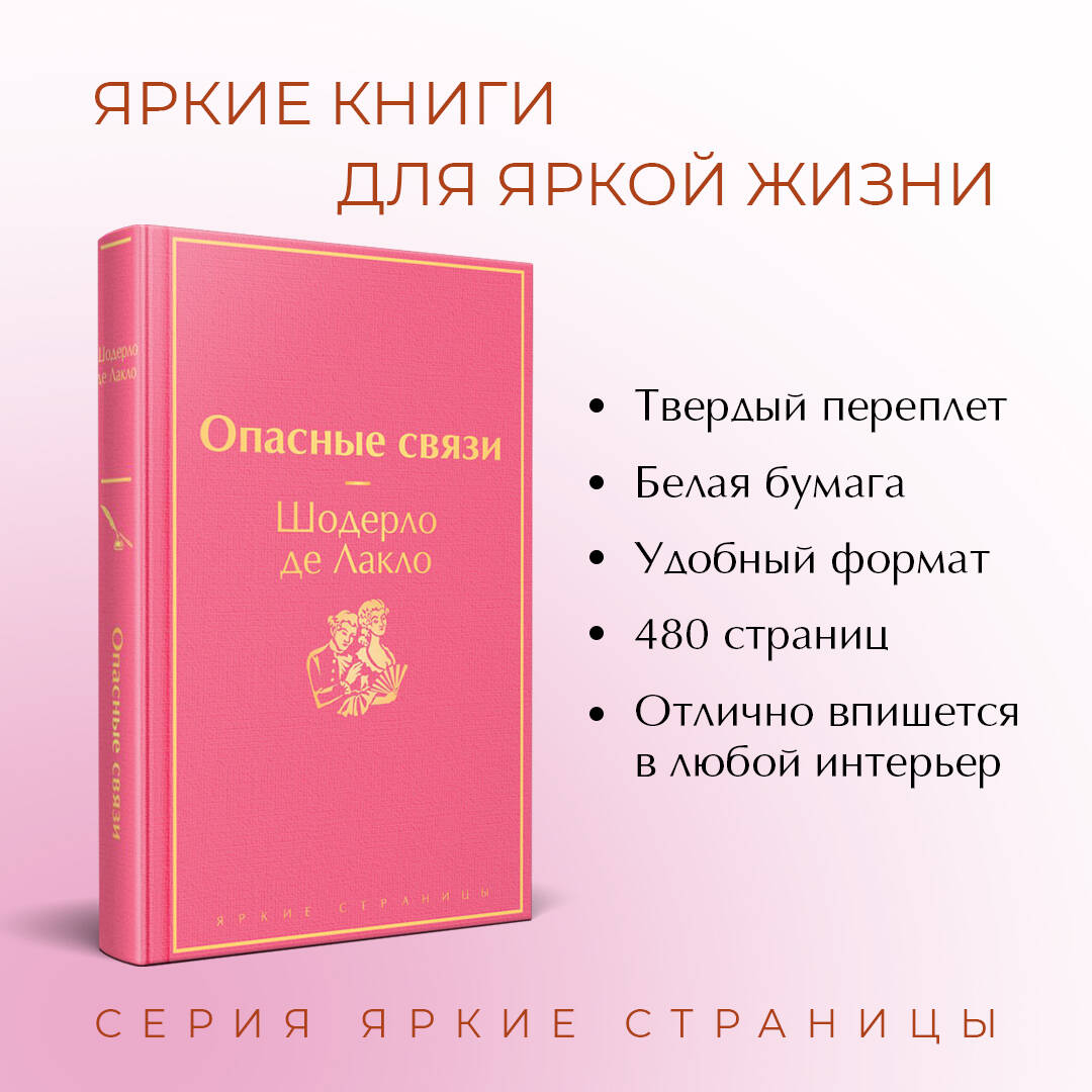 Франция XVIII столетия. Молоденькую Сесиль мать забирает из монастыря, чтобы выдать замуж. А парочка изысканно-развращенных негодяев - маркиза де Мертей и виконт де Вальмон - делают все, чтобы осуществить свои коварные планы. Ломают юной девушке жизнь, расстраивая ее свадьбу. Развращают замужнюю богобоязненную леди, демонстрируя знание всех особенностей и тонкостей соблазнения. Настоящая школа по покорению сердец. Автор в предисловии приводит мнение одной из матерей о книге: «Я считала бы, что окажу услугу своей дочери, если дам ей ее прочесть в день ее замужества». «Опасные связи» - роман, вышедший в 1782 году в Париже, стал самым читаемым и самым обсуждаемо-скандальным. Этот шедевр мировой литературы и сейчас не потерял своей остроты. Не случайно роман был экранизирован 13 раз. Это и «Опасные связи 1960 года» Р. Вадима, и «Вальмон» М. Формана, и «Жестокие игры», в которых действие перенесено в наше время, и фильм Стивена Фрирза 1988 года с Гленн Клоуз, Джоном Малковичем, Мишель Пфайффер в главных ролях. Зимой 2022 г. выходит сериал Sratz по мотивам произведения, он будет приквелом к основной истории романа, действие будет вращаться вокруг маркизы де Мертей и виконта де Вальмона, двух молодых любовников, выросших в трущобах Парижа и добравшихся до вершин французской аристократии. Страсть, соблазн, месть, тайны, желания - это все «Опасные связи».| Издательство | ООО "Издательство "Эксмо" |