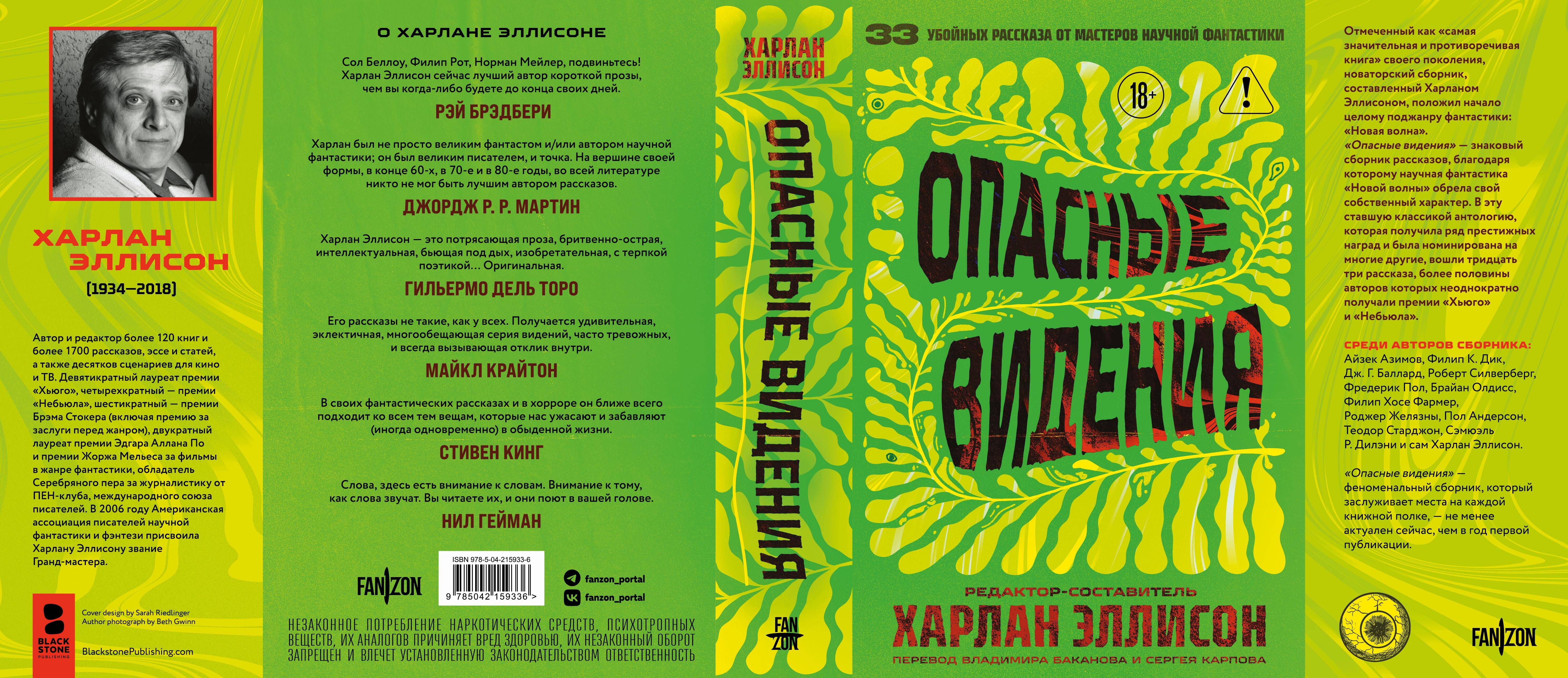 Премии «Хьюго», «Локус», Sfinks и премия Академии НФ. Антологии редко творят историю, но «Опасные видения» - великое и удивительное исключение. В далеком 1967 году, во время студенческих волнений, бесславной войны во Вьетнаме и психоделической революции, писатель и редактор Харлан Эллисон совершил настоящую культурологическую провокацию. Он попросил ведущих фантастов своего времени написать для составляемого им сборника по рассказу, который бы выражал истинное, «опасное» видение будущего и поэтому принципиально не мог быть опубликован в то время. А перечень авторов действительно впечатлял: Айзек Азимов, Филип К. Дик, Роджер Желязны, Пол Андерсон, Роберт Силверберг, Филип Хосе Фармер и другие. Неудивительно, что прекрасные, уникальные, шокирующие и меняющие восприятие произведения, впервые опубликованные под этой обложкой, в дальнейшем частенько становились номинантами и лауреатами главных жанровых премий «Хьюго» и «Небьюла». Для каждого рассказа Харлан Эллисон написал оригинальное предисловие, знакомящее читателя с автором. Сами же писатели подготовили для своих текстов послесловия, раскрывающие нюансы творческого поиска. Для антологии в целом предисловия написали грандмастер «золотого века» фантастики Айзек Азимов, отец «новой волны» Майкл Муркок и продолжатель дела Эллисона - Майкл Стражинский. Все рассказы проиллюстрированы. «Это эпохальное произведение в научной фантастике, которое может с гордостью противостоять литературным снобам, смотрящим на этот жанр свысока». - Энтони Джонс «Такой коллекции еще не было. Она будет удивлять, приводить в ярость и вознаграждать вас на протяжении многих лет». - Джеймс Блиш НЕЗАКОННОЕ ПОТРЕБЛЕНИЕ НАРКОТИЧЕСКИХ СРЕДСТВ, ПСИХОТРОПНЫХ ВЕЩЕСТВ, ИХ АНАЛОГОВ ПРИЧИНЯЕТ ВРЕД ЗДОРОВЬЮ, ИХ НЕЗАКОННЫЙ ОБОРОТ ЗАПРЕЩЕН И ВЛЕЧЕТ УСТАНОВЛЕННУЮ ЗАКОНОДАТЕЛЬСТВОМ ОТВЕТСТВЕННОСТЬ.| Издательство | ООО "Издательство "Эксмо" |