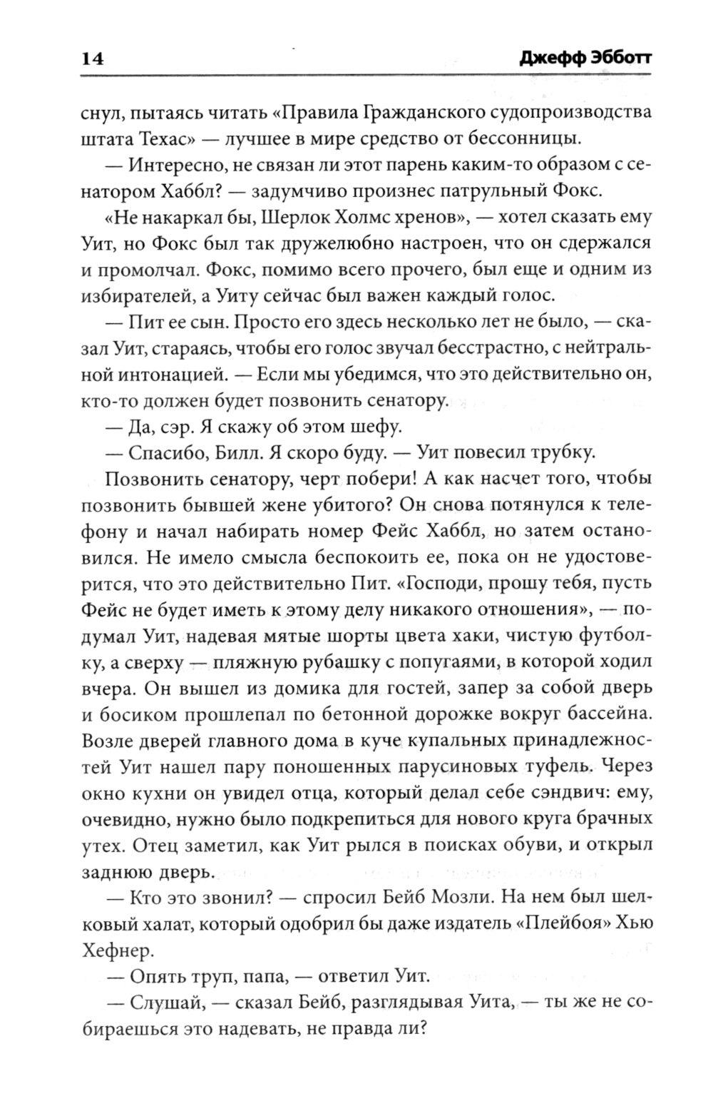 «Книга поражает, словно техасская молния» - такую оценку дал великолепному детективному роману Джеффа Эбботта известный американский писатель Рик Риордан.