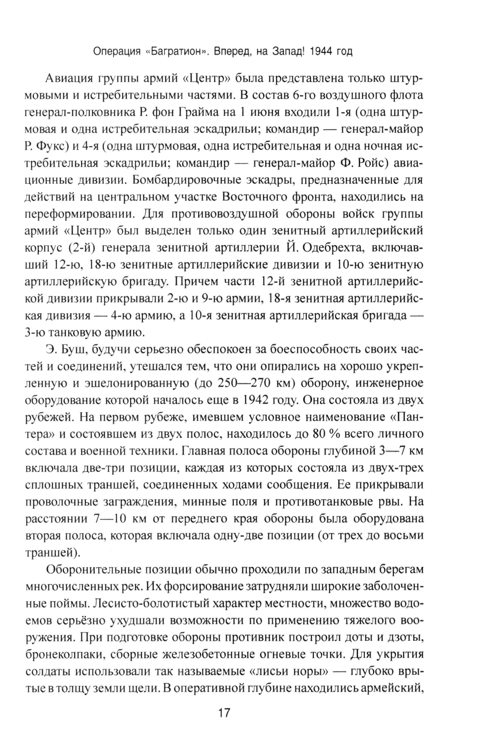 Белорусская наступательная операция получила кодовое наименование «Багратион» в честь «льва русской армии» князя, генерала от инфантерии Петра Ивановича Багратиона. В ходе операции Гитлер трижды менял руководство группами армий «Север» и «Центр», переставлял и убирал одного командующего армией за другим. Несмотря на это, войска 1-го Прибалтийского, 1, 2 и 3-го Белорусских фронтов в ходе «пятого сталинского удара» срезали «белорусский балкон». В результате были пробиты ворота в Восточную Пруссию и к границам Третьего рейха. Немецкие генералы оценивали операцию «Багратион» как события, «непосредственно приближавшие чудовищную катастрофу», ряд западных историков - как «катастрофу невообразимых размеров, большую, чем Сталинград», политические деятели - как «победы огромной важности». С момента проведения операции «Багратион» прошло 80 лет, но интерес к ней не ослабевает. Вопросам её подготовки и проведения посвящена эта книга.| Издательство | Вече |