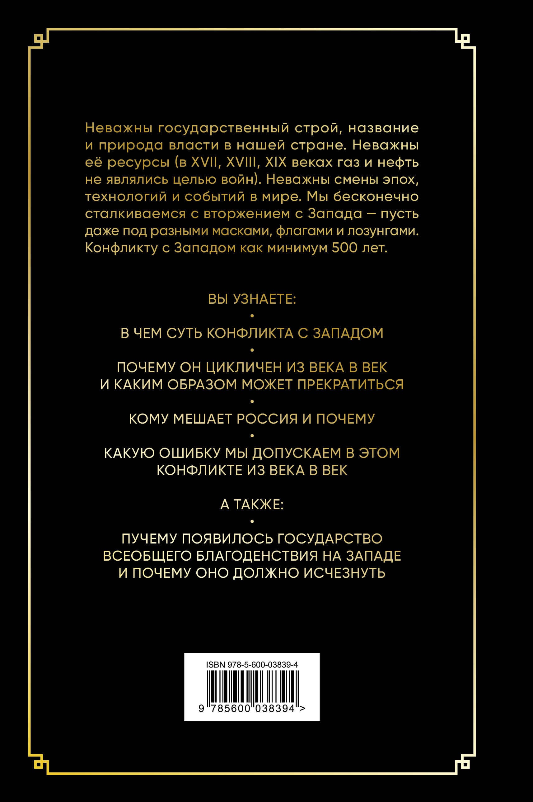 Конфликт с Западом начался не 24 февраля 2022 года - ему как минимум 500 лет. И не важно, какой у нашей страны государственный строй, название и природа власти. Не важно, какие ресурсы (в XVII, XVIII, XIX веках газ и нефть не являлись базовыми ресурсами в мире). Не важна эпоха, развитие технологий и события в мире. Мы бесконечно сталкиваемся с вторжением с Запада - пусть даже под разными масками, флагами и лозунгами. Базой для книги послужили статьи, написанные с 2016 по 2023 годы кандидатом экономических наук Иваном Слащевым. Автор разбирается в причинах конфликта с Западом, анализирует участников, исходы в разные периоды, приводит аналитическую и статистическую информацию. Вы узнаете: • В чем суть конфликта с Западом. • Почему он цикличен из века век и каким образом может прекратиться. • Кому мешает Россия и почему. • Какую ошибку мы допускаем в этом конфликте из века в век. А также: • Почему появилось государство всеобщего благоденствия на Западе и почему оно должно исчезнуть.