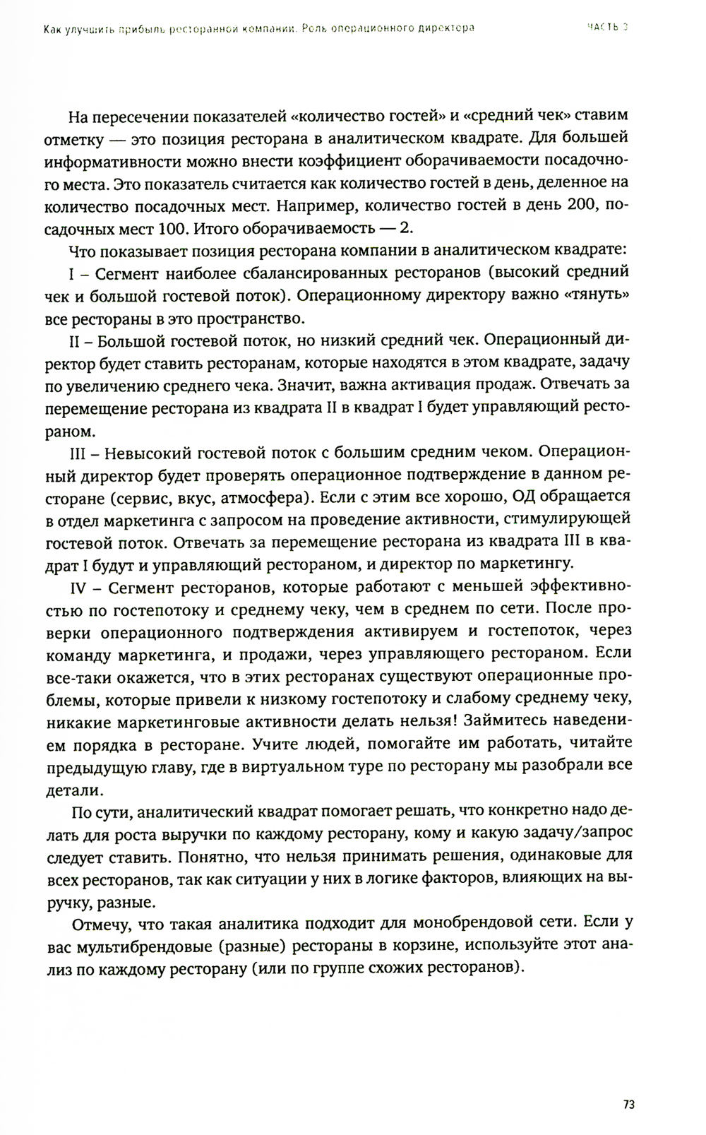 Это второй том книги по операционному управлению ресторанными сетями. Здесь вы узнаете о системах производственного и управленческого учетов, подходах в увеличении выручки, оптимизации себестоимости, затрат и выходе на механизмы улучшения прибыли всей компании. Вопрос, как увеличить прибыль, больше не будет без ответа. В книге приводятся реальные примеры и стратегии, которые уже помогли увеличить рентабельность ресторанных компаний в среднем на 25%. Отдельный блок посвящен HR-технологиям, лидерству и техникам влияния на команды. Операционному директору нельзя думать, что он сможет вытянуть вопрос руководства компанией на своем обаянии или системности. Управлению нужно учиться. Половина материала будет посвящена личным эффективным наработкам автора в лидерстве, формировании эффективных команд. Уникальность книги в том, что это единственный в своем роде мультимедийный проект, так как здесь вы увидите не только текст, но и ссылки на видеоматериалы, дающие возможность проработать каждую тему гораздо глубже. Вы сможете не только читать, но и смотреть записи или скачивать полезный материал. А в приложениях в конце книги найдете большое количество шаблонов, чек-листов и реальных практических методик для анализа. Эта книга обречена на успех, поскольку в ней не только представлена информация о личных подходах, секретах и методиках автора в сетевом управлении, но и содержится значительное количество кейсов и примеров из реальной практики последних лет.