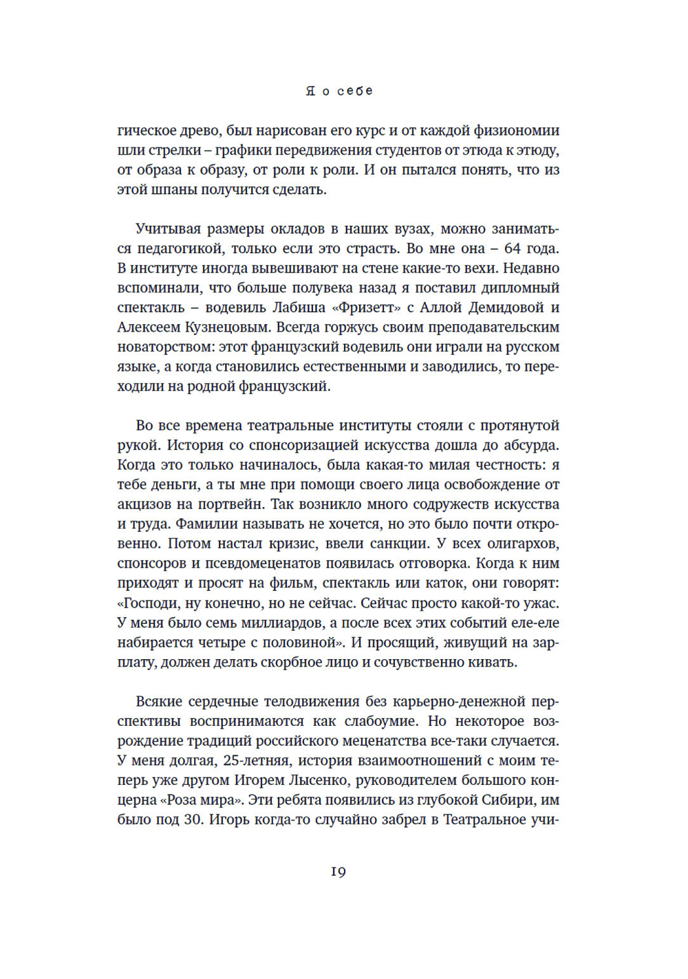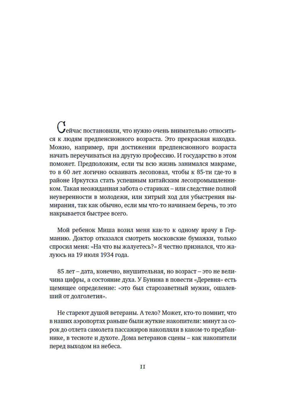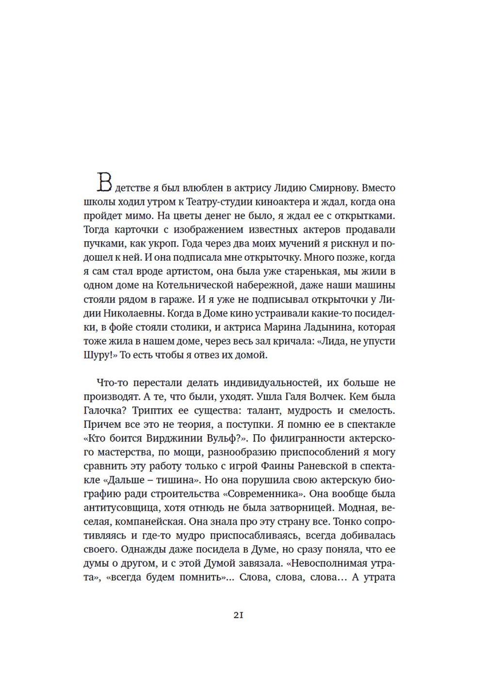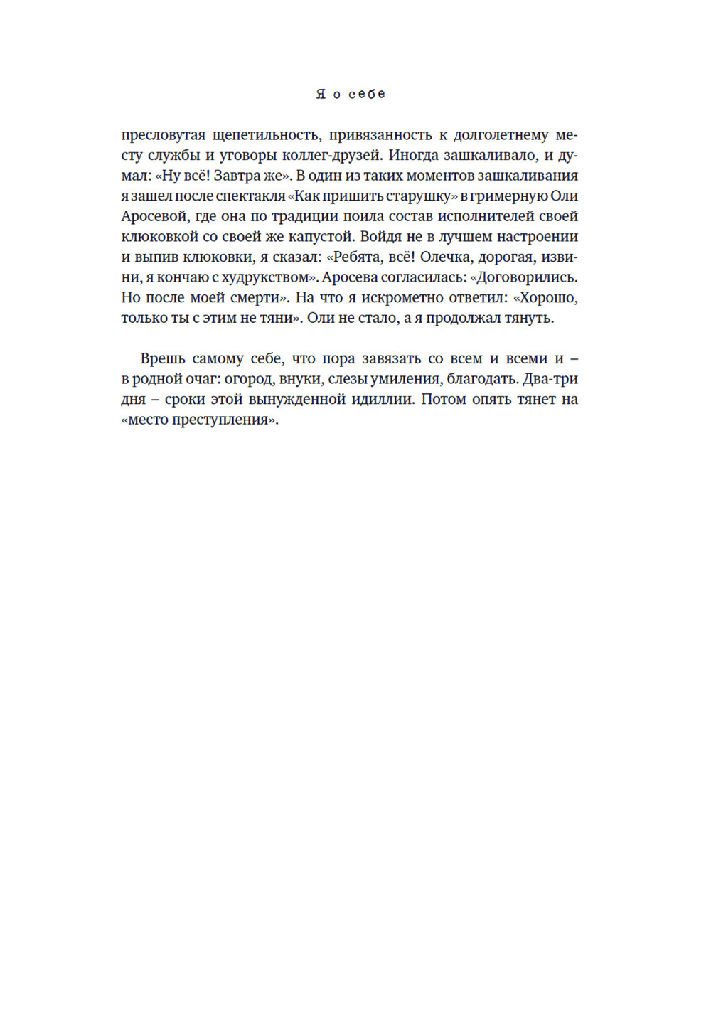 В 2019 году Александр Ширвиндт - всенародно любимый актер, режиссер и телеведущий - отметил юбилей. «Когда мне стукнуло 85, я подумал, что это вполне серьезная цифра, чтобы себя сформулировать», - так он пишет в предисловии к мемуарам «Опережая некролог». Разделенная на две части - это книга воспоминаний: с раннего детства и до наших дней - о семье и о близких, о службе в театре, о съемках в кино. И, конечно, о любимых друзьях. Александр Ширвиндт с непревзойденным чувством юмора делится своими мыслями и с нежностью и теплотой вспоминает Евгения Евтушенко и Эльдара Рязанова, Аркадия Арканова и Булата Окуджаву, Андрея Миронова и Александра Абдулова, Валентина Гафта, Олега Табакова, Марка Захарова, Евгения Примакова и многих других. «Раньше я, бросаясь в графоманию, считал: не надо замахиваться на монументальные мемуары со скромнейшими разделами «Я о себе» и «Они обо мне, а я о них». Теперь подумал: а почему бы и нет? Пусть еще одна книжонка рухнет в залежи литературных запасников. «Увековечить» - корявое и противное слово, хоть и точное по смыслу. Всех, кто мне дорог и кого я не забываю, увековечить невозможно, а хочется. И я придумал для себя принцип выбора персонажей моей судьбы. Я подошел к книжным полкам и под удивленные взгляды домашних выложил на пол всю литературу, кроме Шекспира, Гоголя, Бомарше и других авторов, встречи с которыми не запомнились. В итоге отобрал только книжки с дарственными автографами друзей. Захотелось сказать им в ответ что-то очень нежное, честное и остроумное, но это вещи несовместные, поэтому приходится быть искренним».| Издательство | КоЛибри |