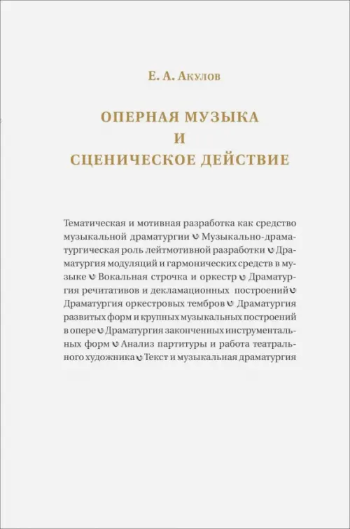 Главный труд профессора ГИТИСа дирижера Евгения Алексеевича Акулова (1905-1996) посвящен практическим задачам музыкального театра. Книга адресована режиссерам оперы или оперетты, дирижерам, хормейстерам, концертмейстерам, а также артистам, театральным художникам и другим творческим работникам театра.