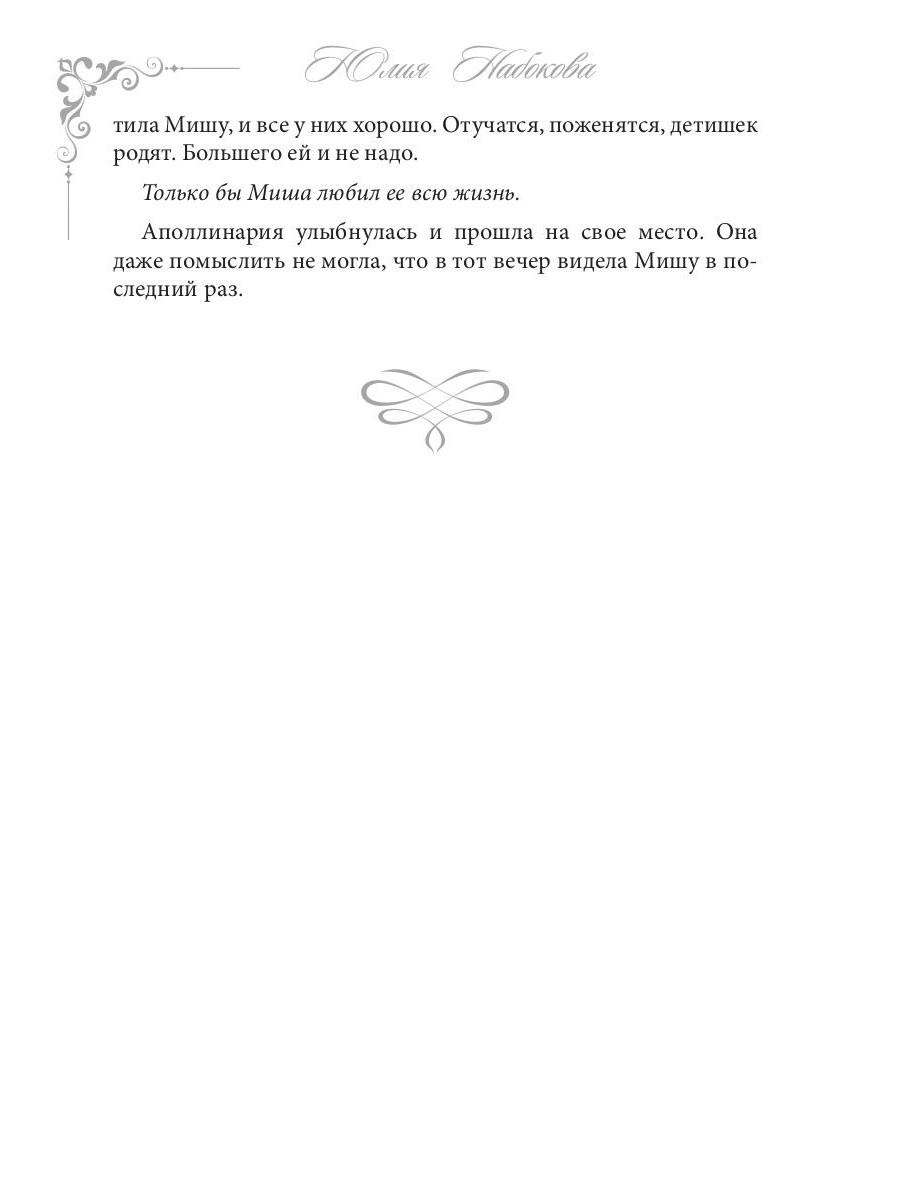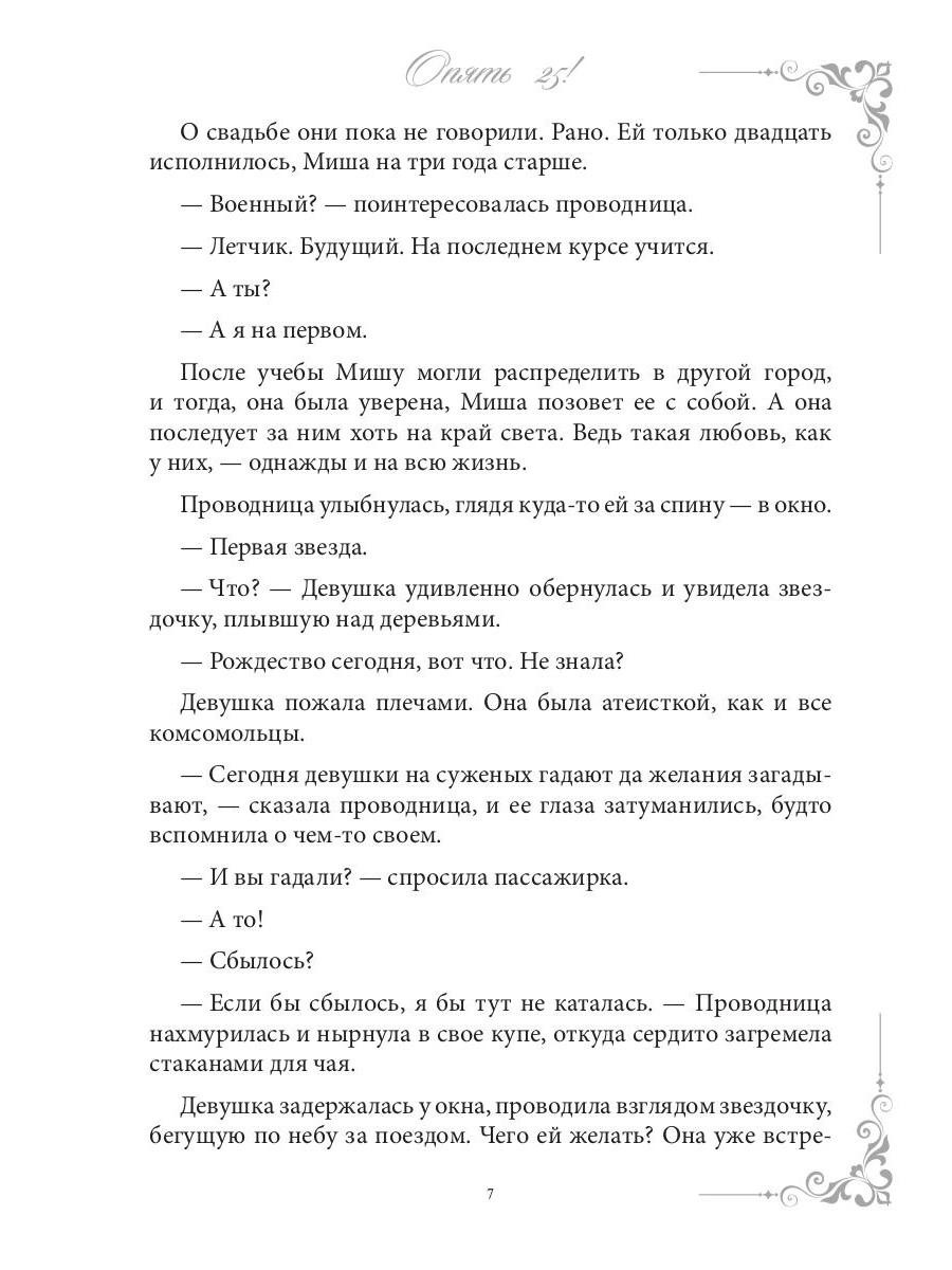 Жизнерадостная и молодая душой 75-летняя Аполлинария загадывает желание на Рождество и становится 25-летней. Она бросает все силы на поиски лучшего жениха для своей 25-летней внучки, встречает парня, как две капли воды, похожего на ее первую любовь, и, пустившись в расследование, выясняет неожиданную правду о своем прошлом. Но сможет ли она избежать опасности в лице заклятой подруги-колдуньи и светской львицы, одержимой поисками эликсира молодости? Ведь Аполлинария - единственная, кому удалось обмануть время и снова стать молодой.| Издательство | Т8 RUGRAM |