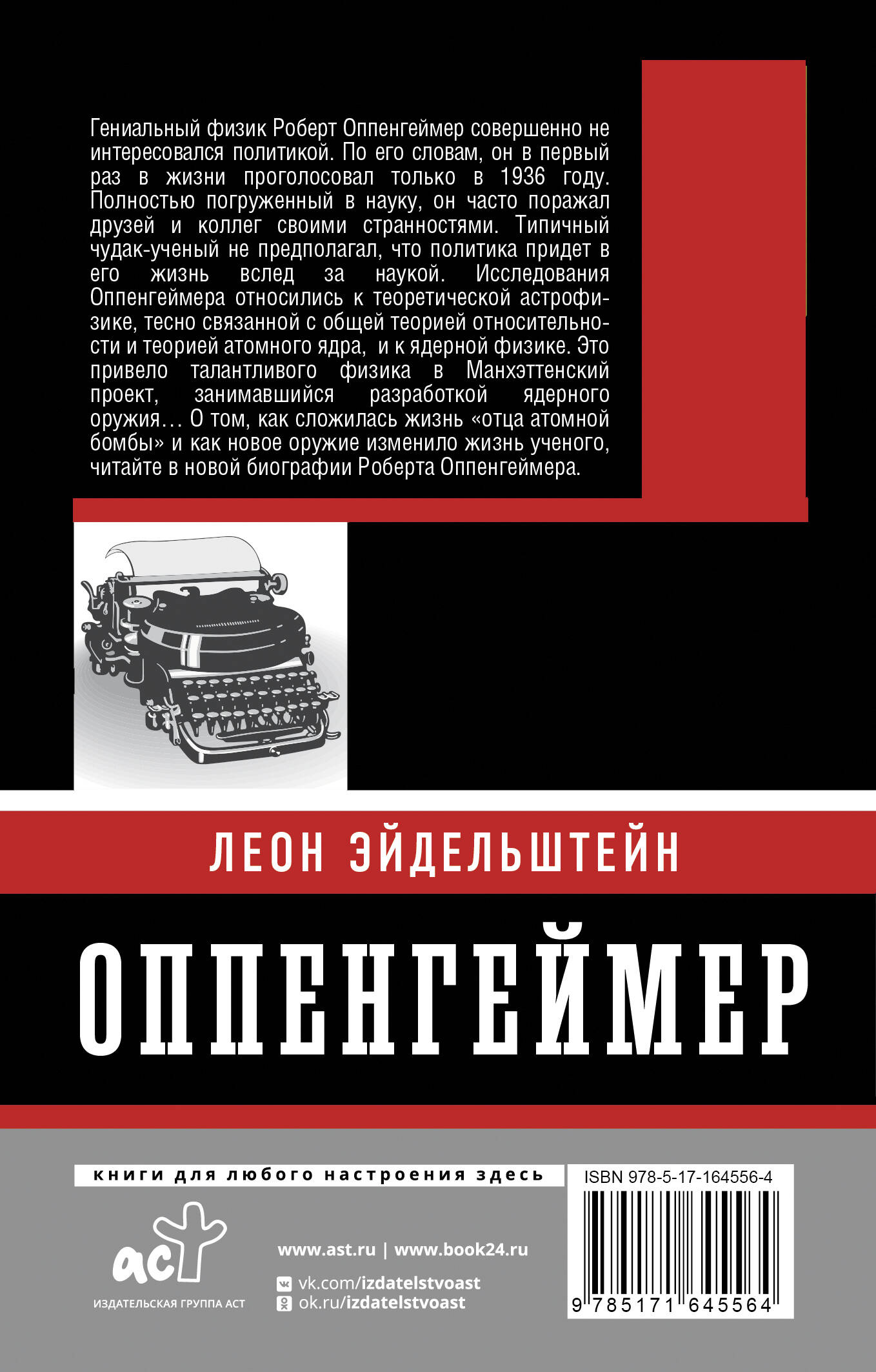 Гениальный физик Роберт Оппенгеймер совершенно не интересовался политикой. По его словам, он в первый раз в жизни проголосовал только в 1936 году. Полностью погруженный в науку, он часто поражал друзей и коллег своими странностями. Типичный чудак-ученый не предполагал, что политика придет в его жизнь вслед за наукой. Исследования Оппенгеймера относились к теоретической астрофизике, тесно связанной с общей теорией относительности и теорией атомного ядра, ядерной физике. Это привело талантливого физика в Манхэттенский проект, занимавшийся разработкой ядерного оружия… О том, как сложилась жизнь "отца атомной бомбы" и как новое оружие изменило жизнь ученого, читайте в новой биографии Роберта Оппенгеймера.| Издательство | Издательство "АСТ" |