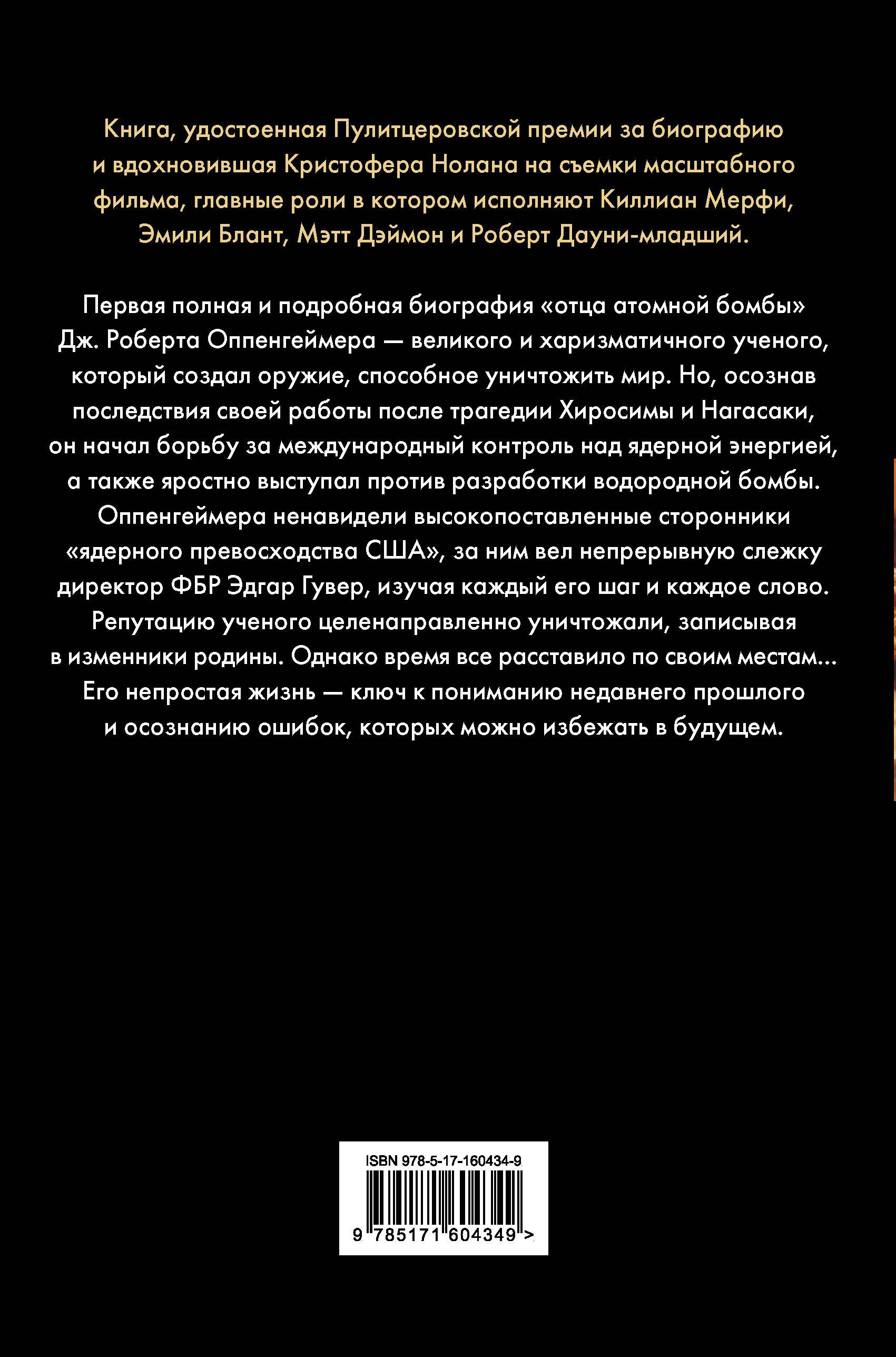 Одна из главных публицистических книг года. Подробная и увлекательная биография создателя атомной бомбы. Пулитцеровская премия в номинации «Лучшая биография». Литературная основа нового фильма Кристофера Нолана. Новое подарочное издание.| Издательство | Издательство "АСТ" |