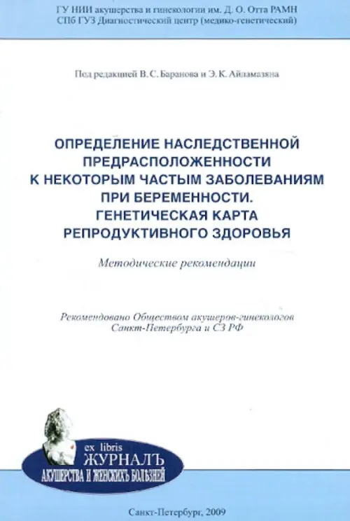 Методические рекомендации подготовлены по результатам многолетних научных исследований сотрудников лаборатории пренатальной диагностики, врачей и сотрудников клинических отделений НИИ АГ им. Д. О. Отта СЗО РАМН. Предназначены для практических врачей, прежде всего, акушеров-гинекологов, неонатологов, педиатров, врачей женских консультаций, врачей широкого профиля и медицинских генетиков, использующих в своей работе методы генетического тестирования наследственной предрасположенности к некоторым частым мультифакторным заболеваниям, нередко препятствующим наступлению беременности или серьезно осложняющим ее течение.