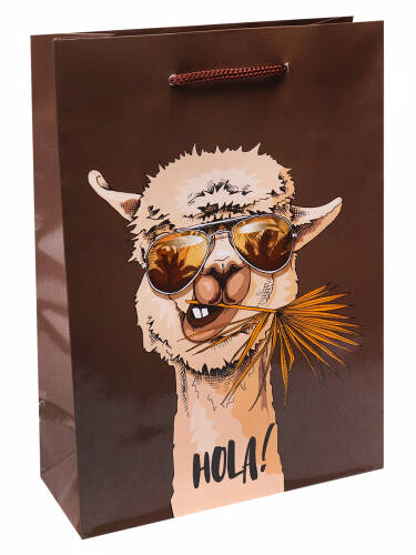 Аннотация: Optima Пакет подарочный с глянцевой ламинацией 26,4x32,7x8 см (L) Дерзкая лама, 128 г ПКП-3599