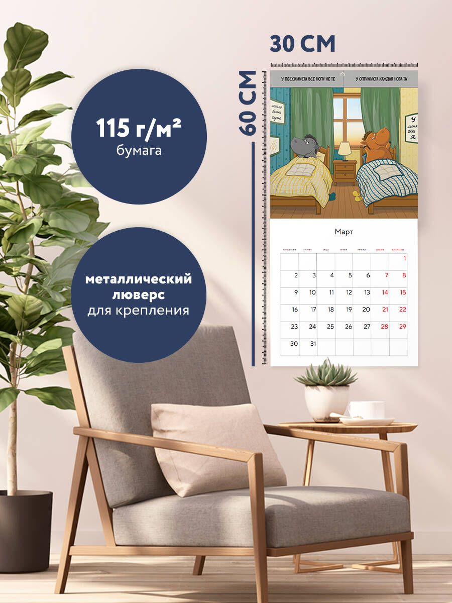 Оптимист и пессимист. Календарь настенный на 2026 год (300х300 мм)