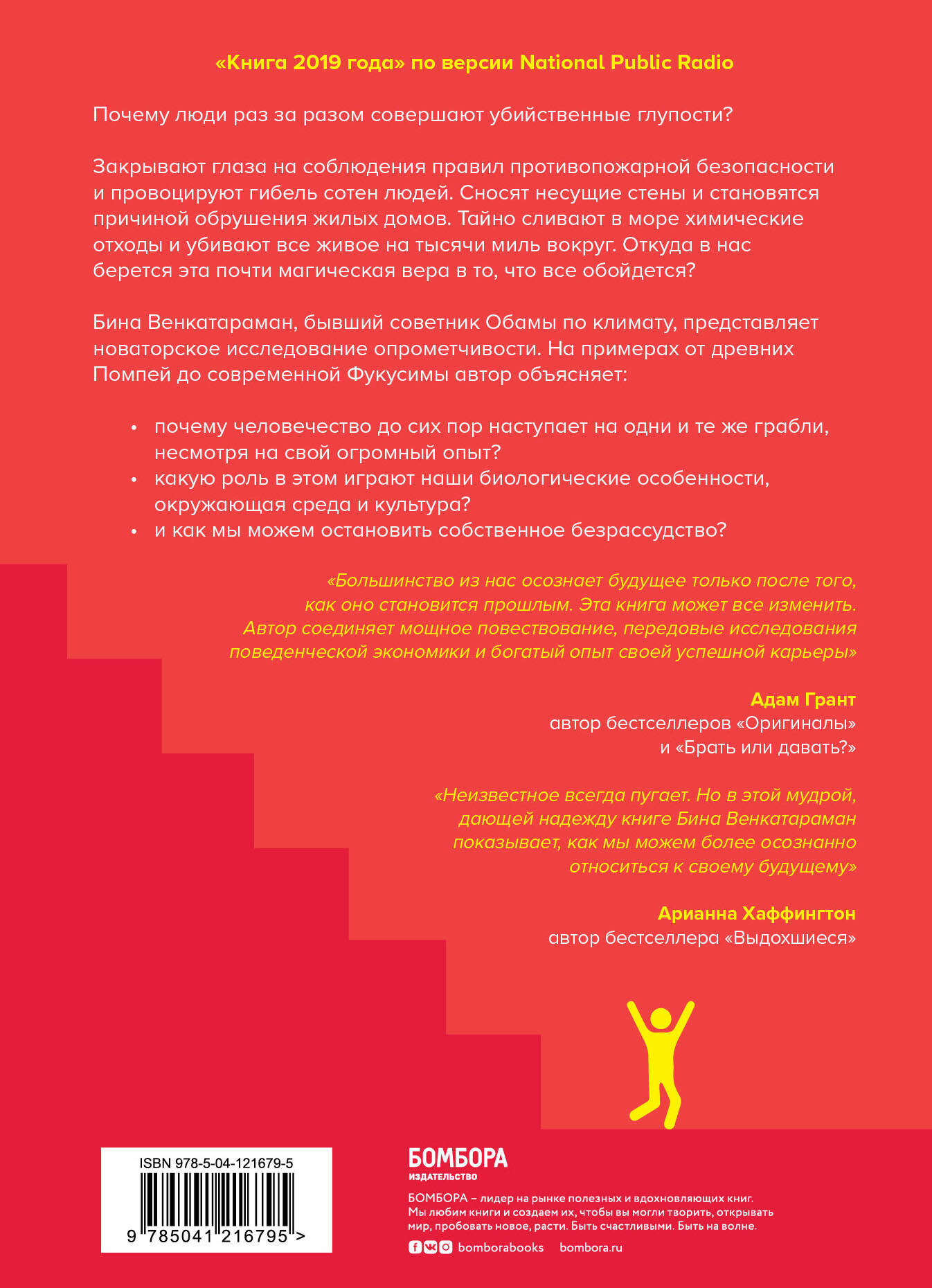 Почему люди раз за разом совершают убийственные глупости? Закрывают глаза на соблюдения правил противопожарной безопасности и провоцируют гибель сотен людей. Сносят во время ремонта несущие стены и становятся причиной обрушения жилых домов. Тайно сливают в море химические отходы и убивают все живое на тысячи миль вокруг. Откуда в нас берется эта почти магическая вера, что все обойдется? Бина Венкатараман, бывший советник Обамы по климату, представляет новаторское исследование опрометчивости. На примерах от древних Помпей до современной Фукусимы автор объясняет: · почему человечество до сих пор наступает на одни и те же грабли, несмотря на свой огромный опыт; · какую роль в этом играют наши биологические особенности, окружающая среда и культура; · и как мы можем остановить собственное безрассудство.| Издательство | ООО "Издательство "Эксмо" |