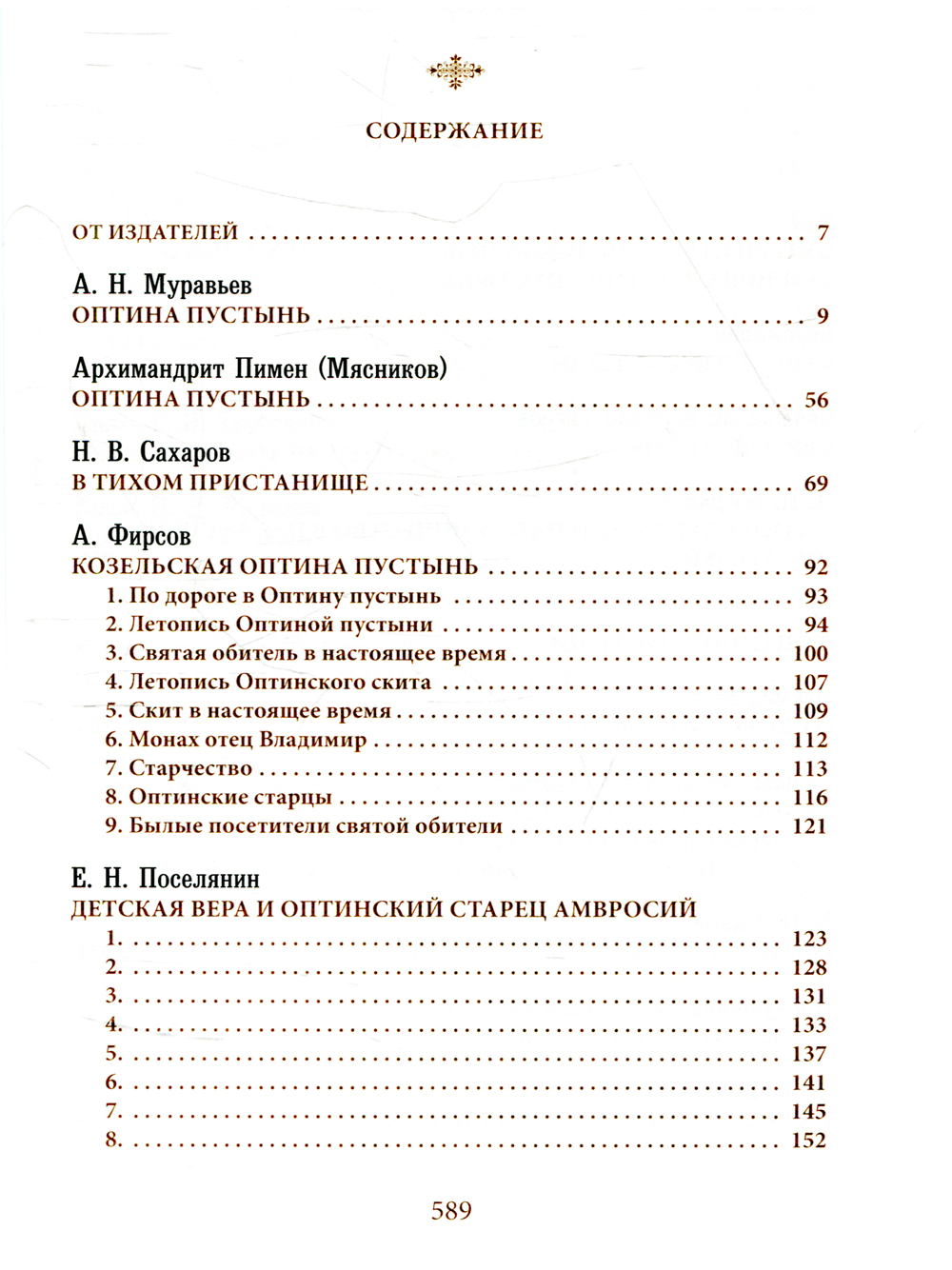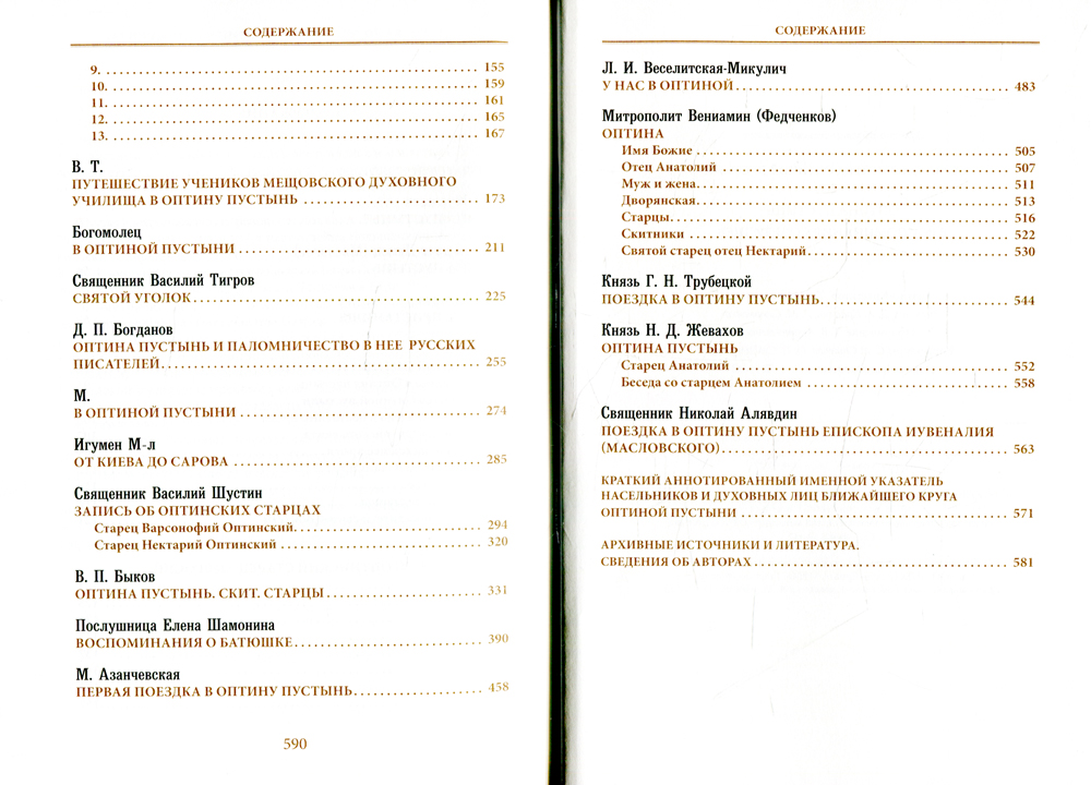 Опубликованные в сборнике воспоминания описывают Оптину пустынь в период с 1851 по 1918 год и принадлежат перу таких известных людей своего времени, как обер-секретарь Св. Синода А. Н. Муравьев, настоятель Николо-Угрешского монастыря архимандрит Пимен (Мясников), митрополит Вениамин (Федченков), духовный писатель Е. Н. Поселянин, дипломат князь Г. Н. Трубецкой, товарищ обер-прокурора Св. Синода князь Н. Д. Жевахов, писательница Л. И. Веселитская-Микулич, и других лиц духовного сана, монашествующих и мирян. Читатель на страницах этой книги найдет ответы на многие жизненные вопросы, пути разрешения сложных жизненных ситуаций и, как надеются издатели, получит большое духовное утешение.| Издательство | Введенский муж. монастырь Оптина Пустынь |