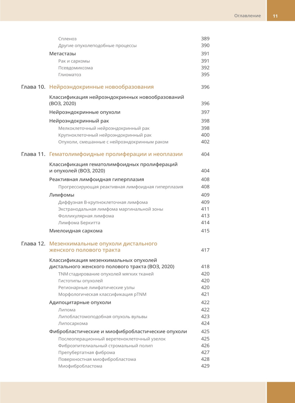 В руководстве кратко представлены основные клинические, макро- и микроскопические, а также молекулярно- генетические признаки, позволяющие диагностировать доброкачественные, пограничные и злокачественные опухоли в яичниках, маточных трубах и брюшине, теле и шейке матки, влагалище и вульве. Все нозологические единицы характеризуются по единому стандарту: коды по ICD-O (Международной классификации онкологических болезней) и ICD-11 (Международной классификации болезней 11-го пересмотра), краткое определение патологического процесса, локализация, клинические проявления, эпидемиология и этиология, патогенез, макроскопическая характеристика, микроскопические, молекулярно- генетические и дифференциально-диагностические особенности, прогностические и предсказательные признаки, а также основные схемы лечения. Единый порядок и лаконичный стиль описания каждой нозологической единицы облегчают доступность информации, делая книгу подобной справочнику. Изложение материала в руководстве приводится в соответствии с классификацией ВОЗ 2020 г. опухолей женского полового тракта с учетом международных стандартов исследования операционного и биопсийного материалов, принципов стадирования по системам TNM и FIGO и определения степени злокачественности (grade, G). Для большинства опухолей и опухолеподобных образований указываются основные признаки дифференциальной диагностики. Все неспецифические опухоли органов женской репродуктивной системы выделены в отдельные главы, посвященные нейроэндокринным, гематолимфоидным, меланоцитарным и мезенхимальным опухолям, которые содержат много общих признаков независимо от локализации. Это не относится к опухолям яичников: все специфические и неспецифические опухоли и метастазы этого органа рассматриваются в главе 1. В послед ней главе приводятся правила приема, фиксации, вырезки, макро- и микроскопического описаний операционного и биопсийного материалов опухолей яичников, маточных труб, тела и шейки матки, влагалища и вульвы. Для патологоанатомов и онкогинекологов.| Издательство | Практическая медицина |