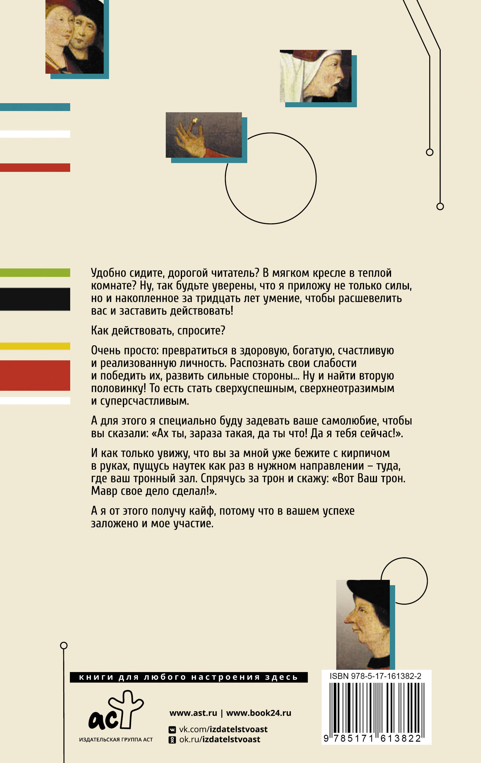 За гениальную способность делать людей лидерами Мирзакарим Норбеков получил блестящее звание "МАСТЕР НАУКИ ПОБЕЖДАТЬ". Трое из десяти миллиардеров России - ученики мастера Норбекова. "Удобно сидите, дорогой читатель? В мягком кресле в теплой комнате? Ну, так будьте уверены, что я приложу не только силы, но и накопленное за тридцать лет умение, чтобы расшевелить Вас и заставить действовать! Как действовать, спросите? Очень просто: превратиться в здоровую, богатую, счастливую и реализованную личность. Распознать свои слабости и победить их, развить сильные стороны... Ну и найти вторую половинку! То есть стать сверхуспешным, сверхнеотразимым и суперсчастливым. А для этого я специально буду задевать Ваше самолюбие, чтобы Вы сказали: "Ах ты, зараза такая, да ты что! Да я тебя сейчас! И как только увижу, что Вы за мной уже бежите с кирпичом в руках, пущусь наутек как раз в нужном направлении - туда, где Ваш тронный зал. Спрячусь за трон и скажу: "Вот Ваш трон. Мавр свое дело сделал!" А я от этого получу кайф, потому что в Вашем успехе заложено и мое участие."| Издательство | Издательство "АСТ" |