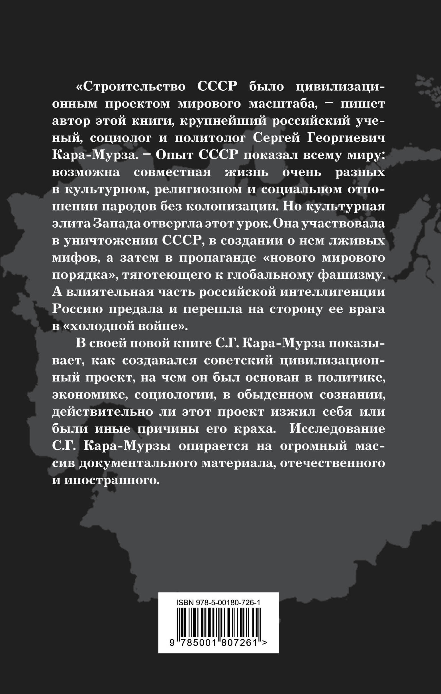 «Строительство СССР было цивилизационным проектом мирового масштаба, - пишет автор этой книги, крупнейший российский ученый, социолог и политолог Сергей Георгиевич Кара-Мурза. - Опыт СССР показал всему миру: возможна совместная жизнь очень разных в культурном, религиозном и социальном отношении народов без колонизации. Но культурная элита Запада отвергла этот урок. Она участвовала в уничтожении СССР, в создании о нем лживых мифов, а затем в пропаганде «нового мирового порядка», тяготеющего к глобальному фашизму. А влиятельная часть российской интеллигенции Россию предала и перешла на сторону ее врага в холодной войне». В своей новой книге С.Г. Кара-Мурза показывает, как создавался советский цивилизационный проект, на чем он был основан в политике, экономике, социологии, в обыденном сознании, действительно ли этот проект изжил себя, или были иные причины его краха. Исследование С.Г. Кара-Мурзы опирается на огромный массив документального материала, отечественного и иностранного.| Издательство | Родина Издательство ООО |