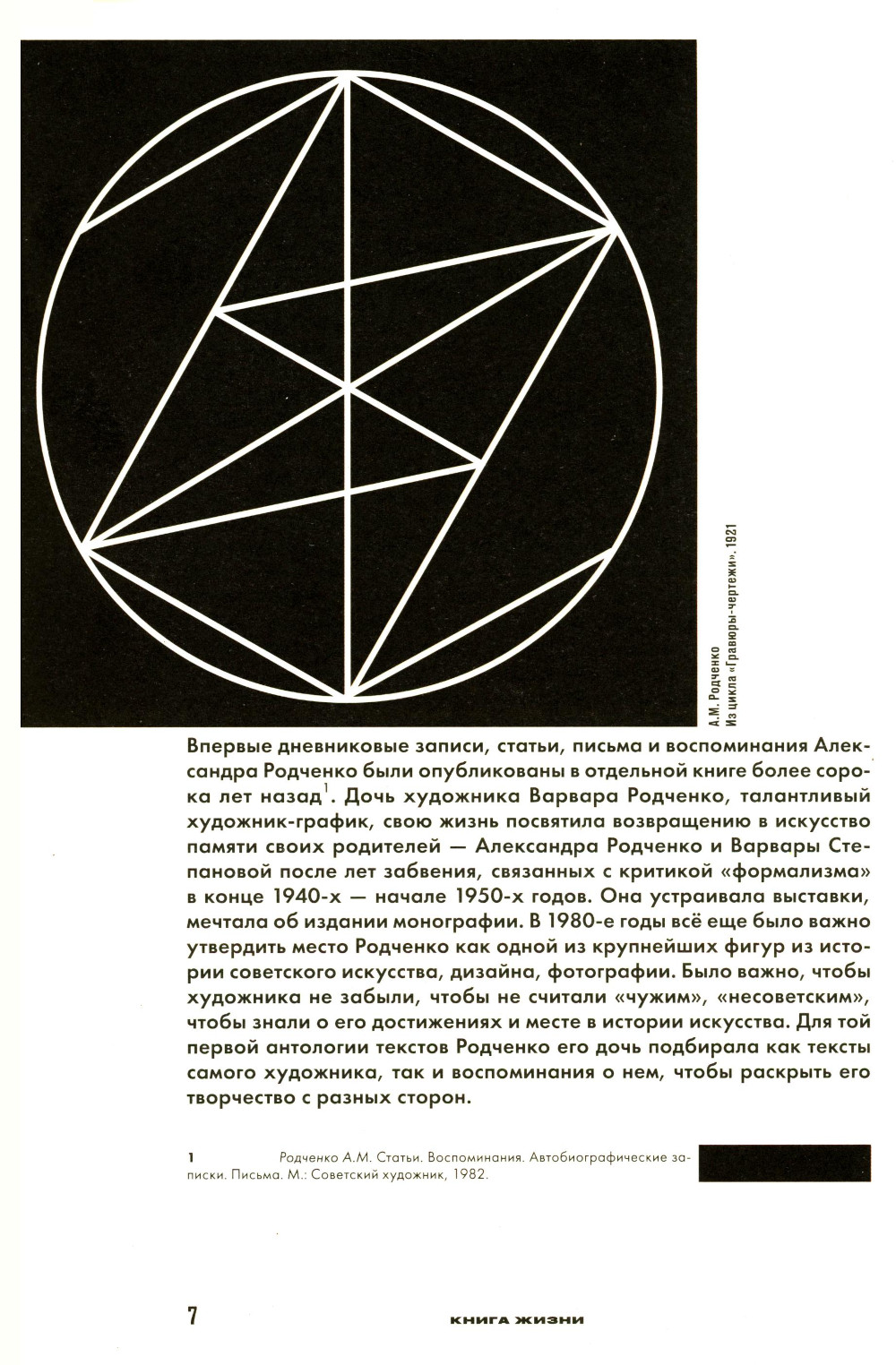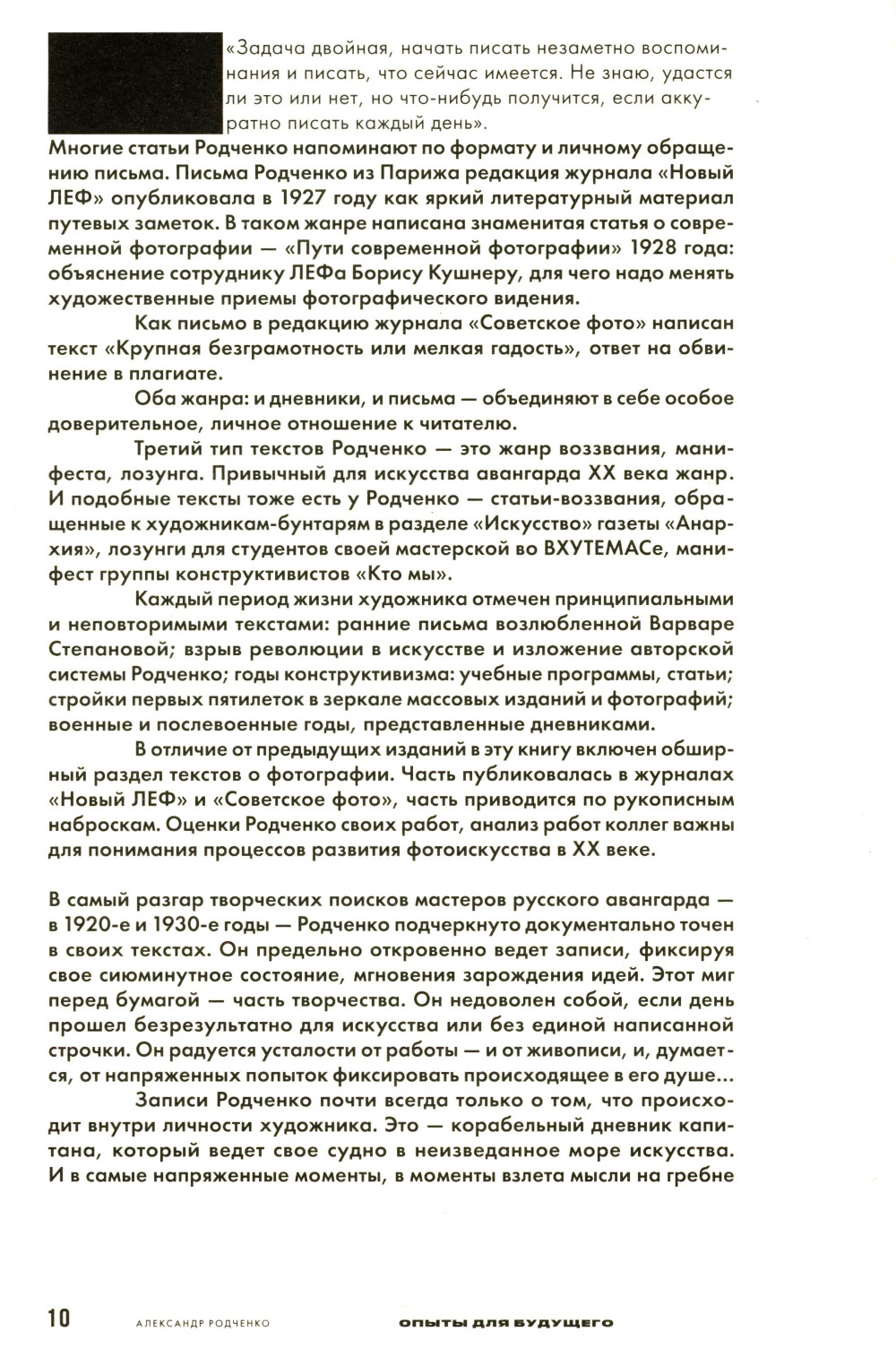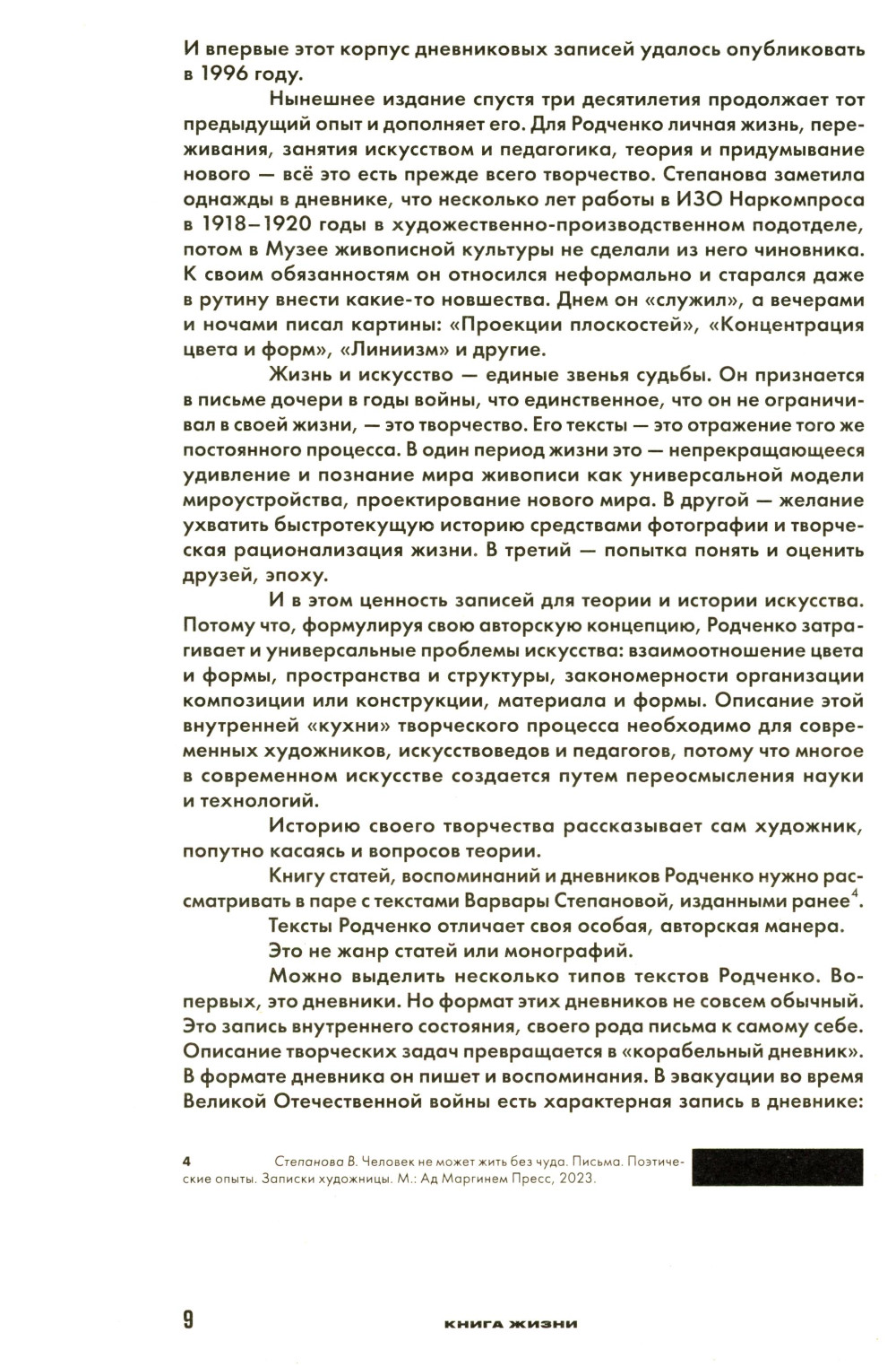 Сборник дневниковых записей, статей, писем, стихов и манифестов Александра Родченко (1891 -1956) - это не только хроника жизни одного из творцов русского конструктивизма, но и история целого направления в искусстве. Вся жизнь была для Родченко непрекращающимся творческим процессом, серией «опытов», которые прекрасно отражены в его текстах разных лет: в беспредметных стихах, посвященных его будущей жене Варваре Степановой, в личных заметках, полных восхищения и удивления от погружения в мир искусства, в статьях, посвященных фотографии и дизайну или «конструированию вещей», в записях о работе с современниками и друзьями - Маяковским, Ганом, Мейерхольдом, Кандинским и др. Родченко удалось очень точно передать ощущение современной ему эпохи революционных открытий, смелых экспериментов, для которой, как писала Варвара Степанова, «будущее - единственная цель».| Издательство | Ад Маргинем Пресс |