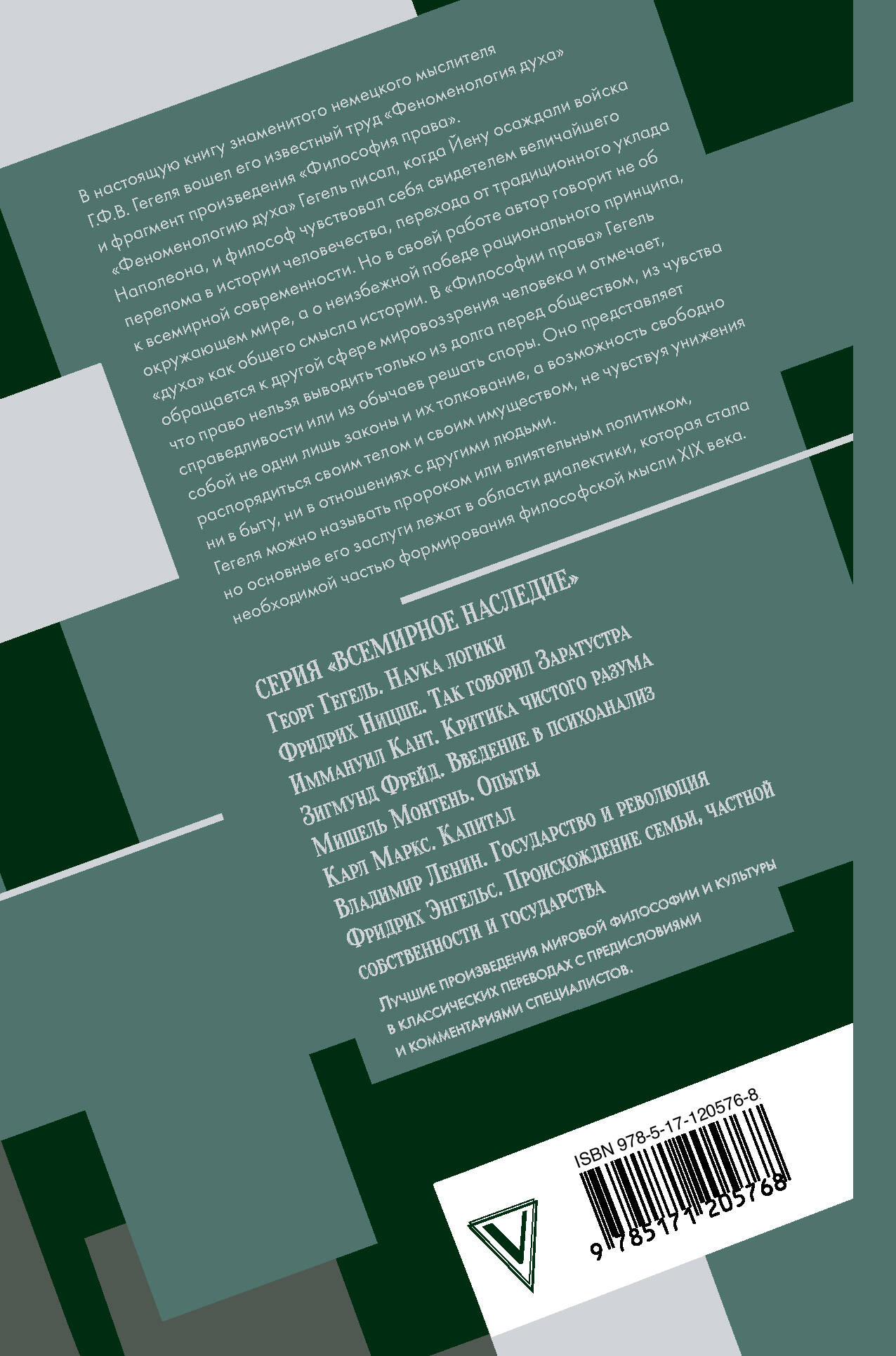 Классические работы и фрагменты трудов одного из ключевых фигур в мировой философии - Геогра Вильгельма Гегеля. "Феноменология духа" была первой большой работой немецкого мыслителя, в которой он разработал свой оригинальный взгляд на науку о миропонимании. Гегель стал основоположником идей немецкого идеализма наряду с гигантами философской мысли - Кантом, Шеллингом, Фихте и Фейербахом. В новое издание вошли комментарии и пояснения.| Издательство | ИЗДАТЕЛЬСТВО "АСТ" |