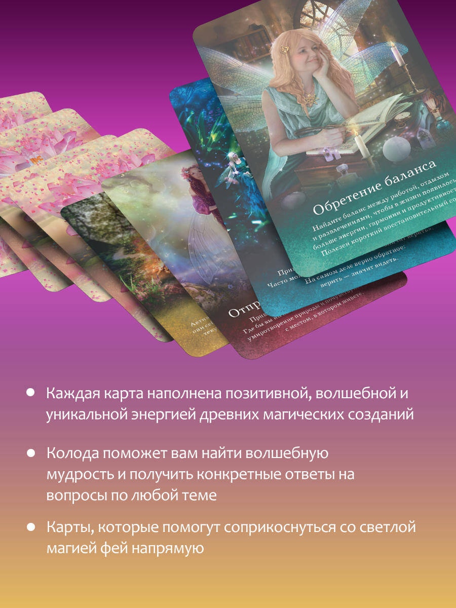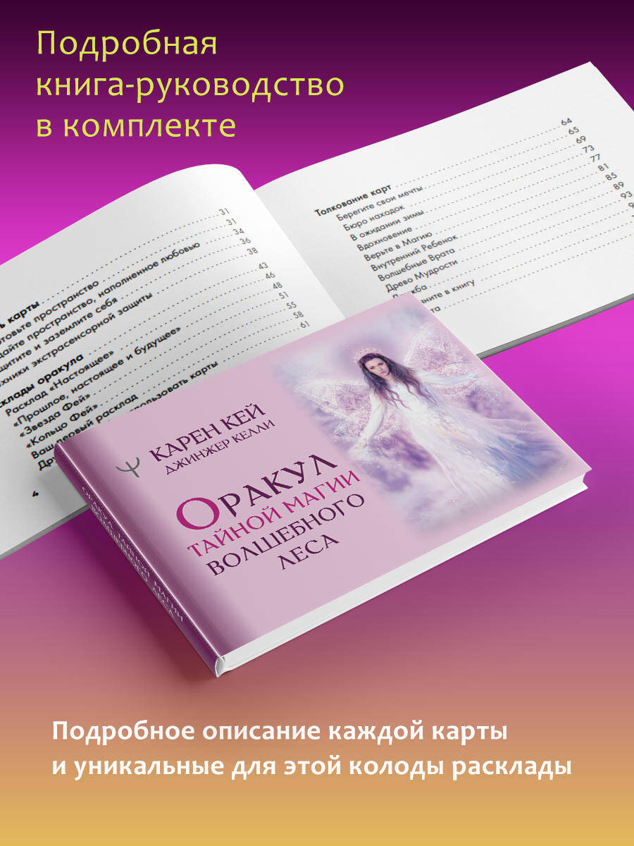 Оракул, созданный Карен Кей, известной "Повелительницей фей", поможет вам найти волшебную мудрость и получить конкретные ответы на вопросы по любой теме. Каждая карта наполнена позитивной, волшебной и уникальной энергией древних магических созданий. Фэйри редко выходят пообщаться с людьми, но благодаря Карен, которая работала как медиум, создавая эту колоду, вы сможете соприкоснуться с их светлой магией напрямую. Эта колода идеальна для людей, которые знают, что в жизни есть нечто большее, чем то, что можно увидеть глазами. Для тех, кто любит планету и заботится о ней, а также испытывает страсть к целительным энергиям и Зеленой магии. В колоде 44 карты и брошюра-инструкция, они упакованы в удобную коробку под размер карт.| Издательство | Издательство "АСТ" |