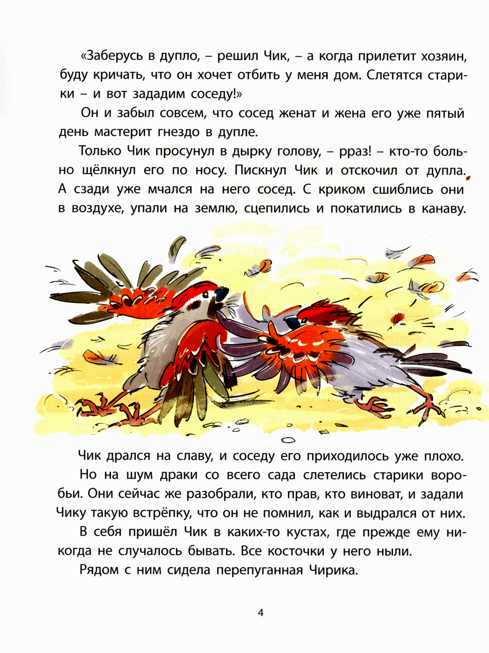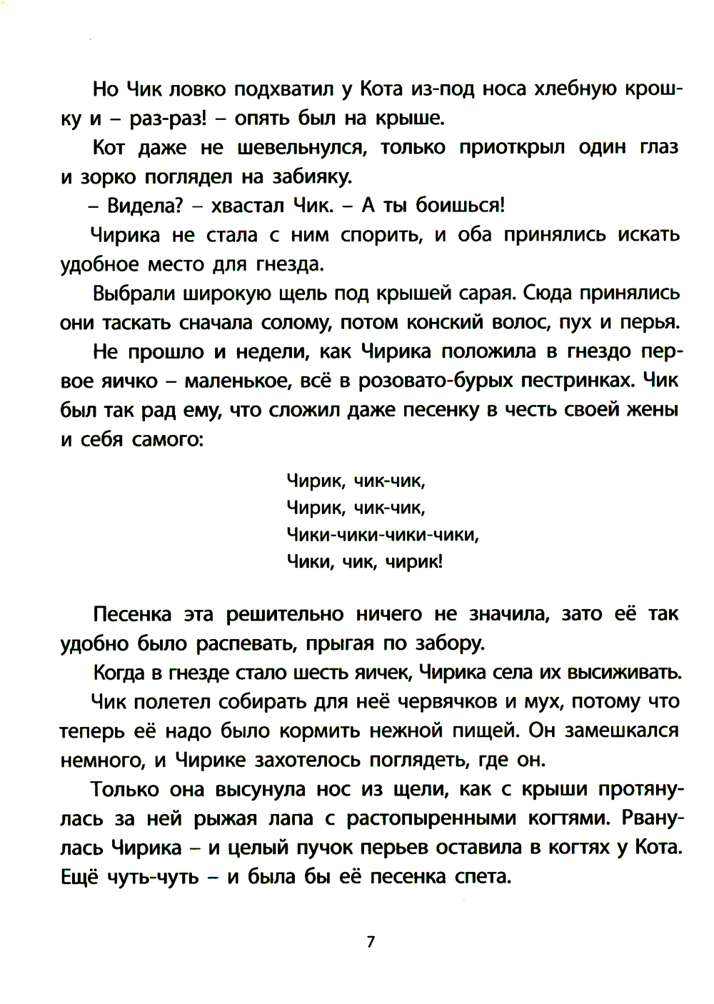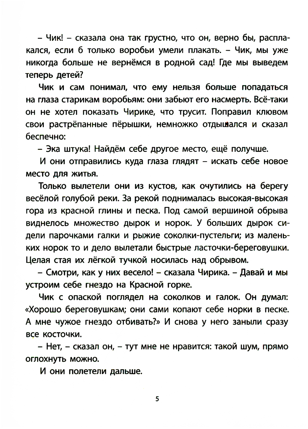 В сборник вошли две добрые и мудрые "птичьи" сказки знаменитого отечественного автора книг о природе Виталия Бианки (1894-1958). Как все по-настоящему хорошие книги, они не только о животных, но и о людях. В забияке Чике, в очаровательной куропатке Оранжевое Горлышко, чьей материнской любви и заботы хватает на три выводка птенчиков, читатель видит черты человеческих характеров. Книга иллюстрирована удивительно лёгкими и изящными рисунками Ольги Боловинцевой.