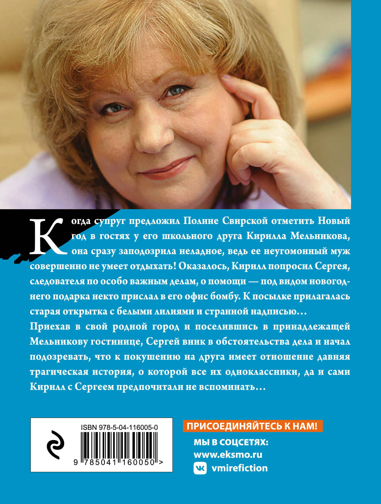 Когда супруг предложил Полине Свирской отметить Новый год в гостях у его школьного друга Кирилла Мельникова, она сразу заподозрила неладное, ведь ее неугомонный муж совершенно не умеет отдыхать! Оказалось, Кирилл попросил Сергея, следователя по особо важным делам, о помощи - под видом новогоднего подарка некто прислал в его офис бомбу. К посылке прилагалась старая открытка с белыми лилиями и странной надписью… Приехав в свой родной город и поселившись в принадлежащей Мельникову гостинице, Сергей вник в обстоятельства дела и начал подозревать, что к покушению на друга имеет отношение давняя трагическая история, о которой все их одноклассники, да и сами Кирилл с Сергеем, предпочитали не вспоминать… В остросюжетных романах Анны Князевой расследуются преступления, следы которых уводят в прошлое и позволяют пролить свет на его загадки. Вслед за героями вы отправитесь навстречу старинным тайнам и увлекательным приключениям!| Издательство | ООО "Издательство "Эксмо" |