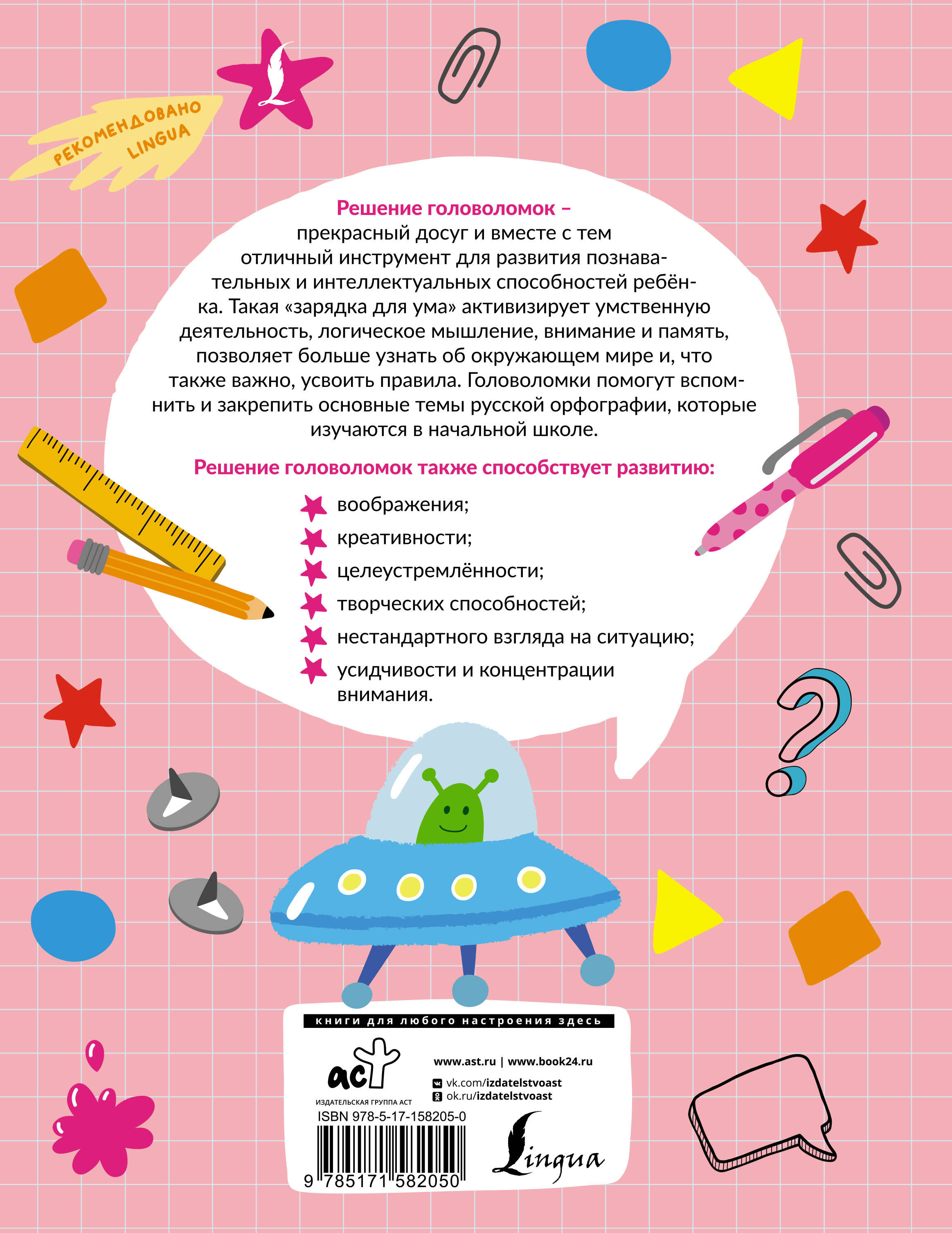 В этой книге вы найдете кейворды, ребусы, загадки и другие виды заданий, которые помогут ребенку освежить и закрепить знания в области русской орфографии. Увлекательные упражнения охватывают основные темы, которые проходят в начальной школе. Это сочетания ЖИ-ШИ, ЧА-ЩА, суффиксы существительных, безударные гласные и другие орфограммы. Для удобства родителей, преподавателей и детей в конце даны ключи к заданиям, чтобы можно было проверить себя. Издание предназначено для детей младшего школьного возраста, будет интересно родителям и учителям.| Издательство | ИЗДАТЕЛЬСТВО "АСТ" |