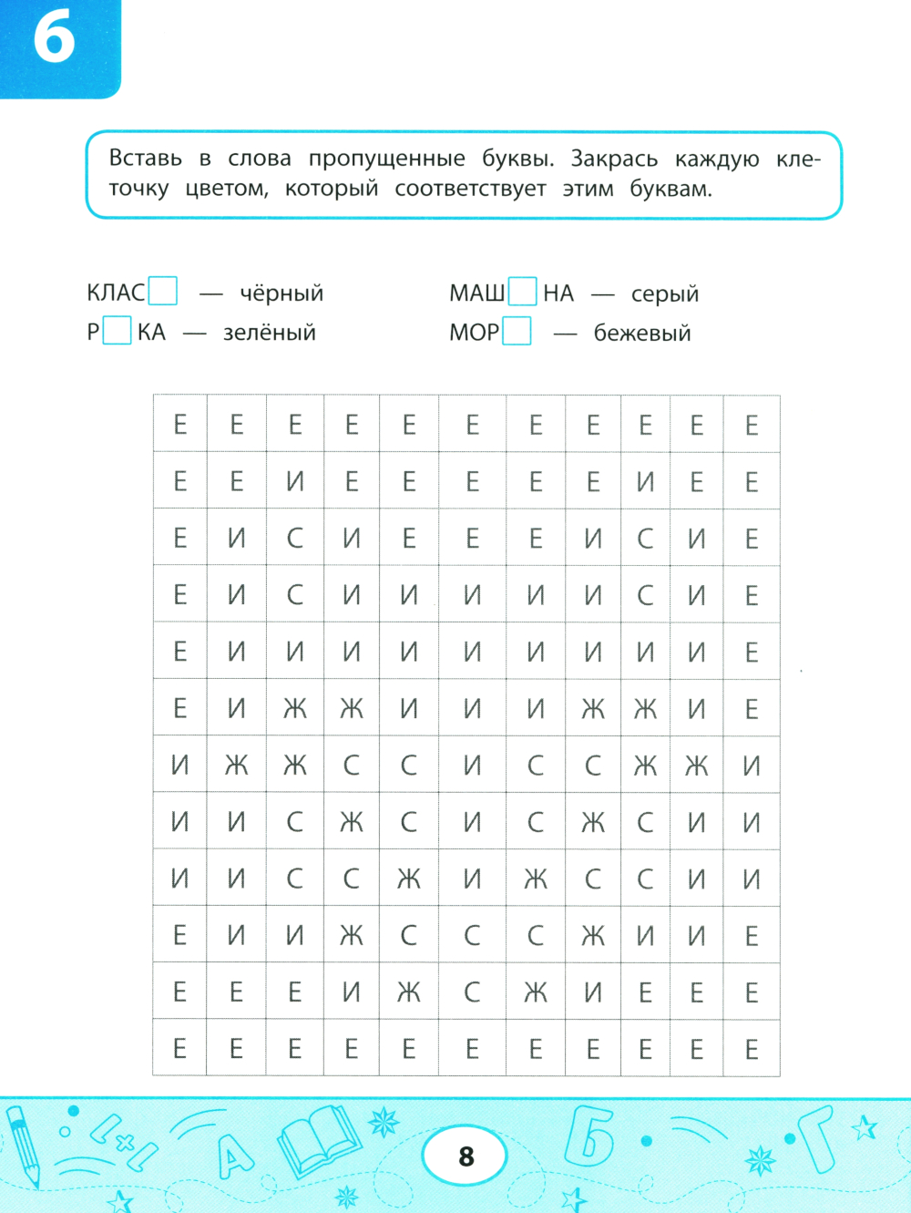 Аннотация: Орфографические тесты-раскраски. Нарисуй по клеточкам