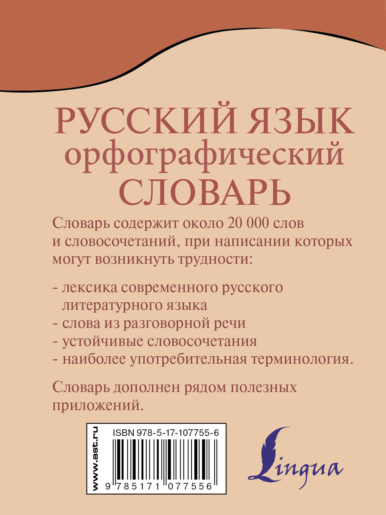 «Орфографический словарь русского языка» - это: - около 20 000 слов и словосочетаний. - слова современного русского языка, которые могут вызвать трудности при написании - краткие толкования в тех случаях, когда надо пояснить особенности правописания. Этот орфографический словарь вполне может служить справочником по современному русскому произношению, поскольку в нем соблюдены все орфоэпические нормы. В приложениях читатель найдет: «Основные правила русской орфографии», «Прописная или строчная», «Слова, которые нужно запомнить («словарные» слова)», «Мужские имена, отчества», «Женские имена», «Города России и названия их жителей». Издание адресовано учащимся старших классов школ, гимназий, студентам, а также всем, кто хочет грамотно писать и говорить по-русски.| Издательство | Издательство "АСТ" |