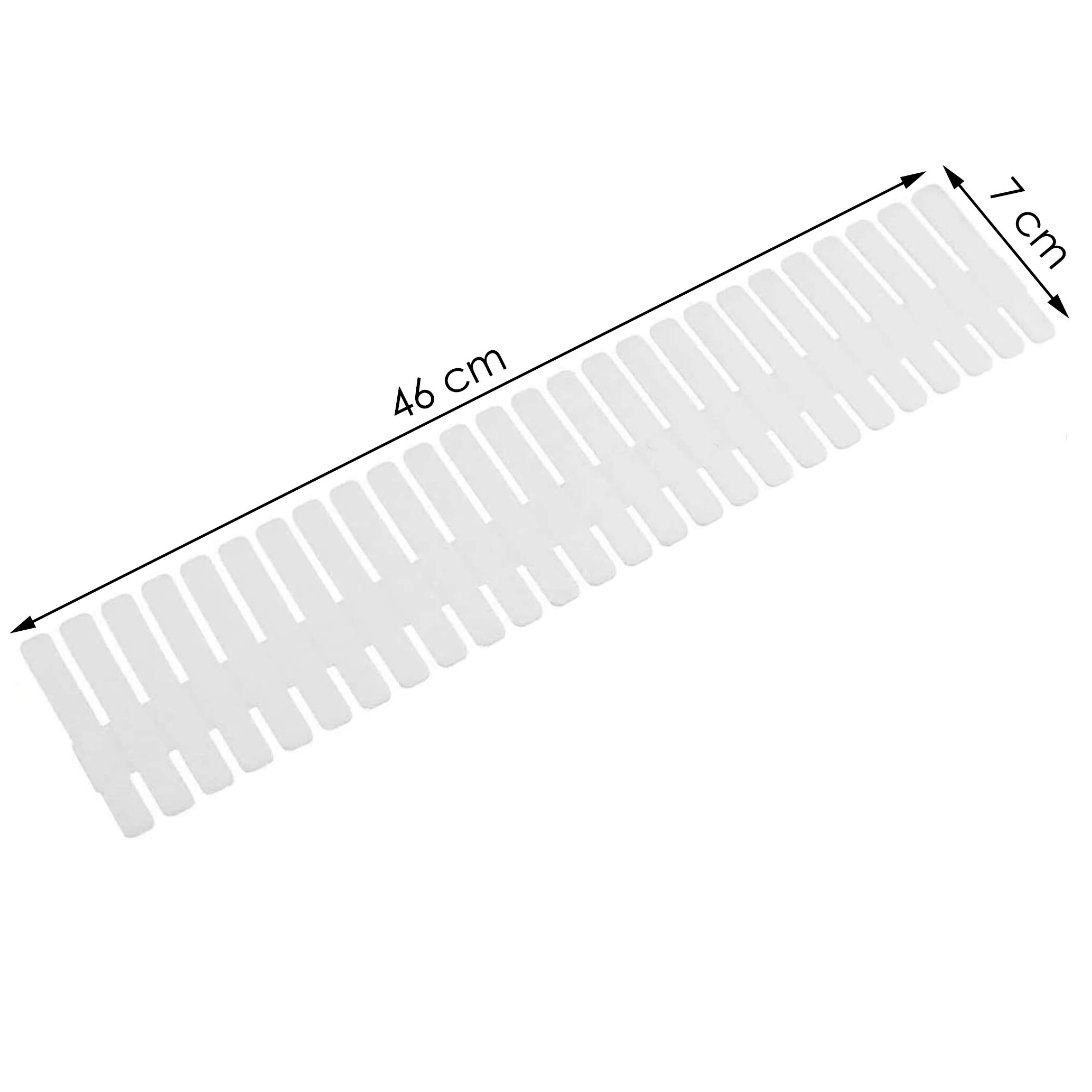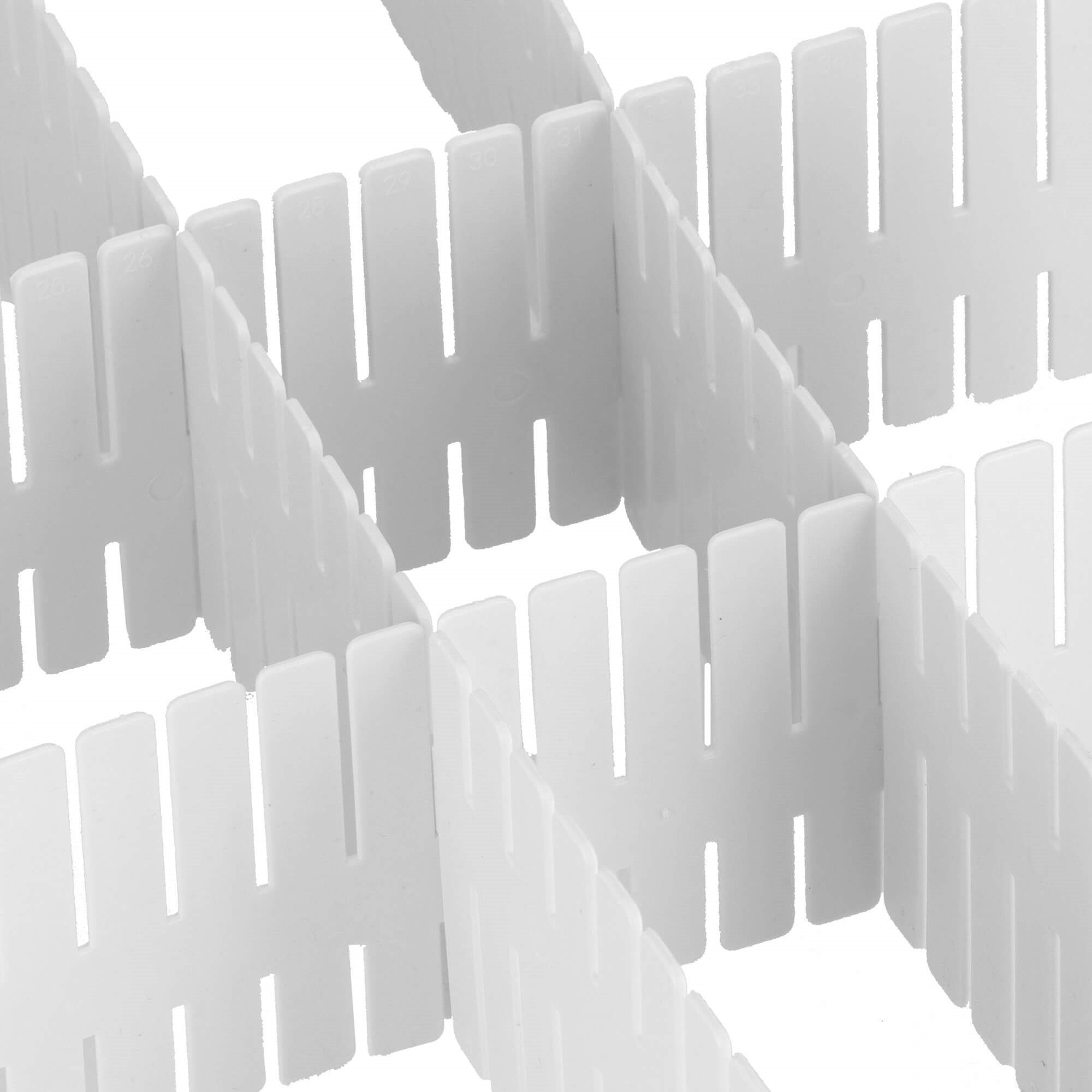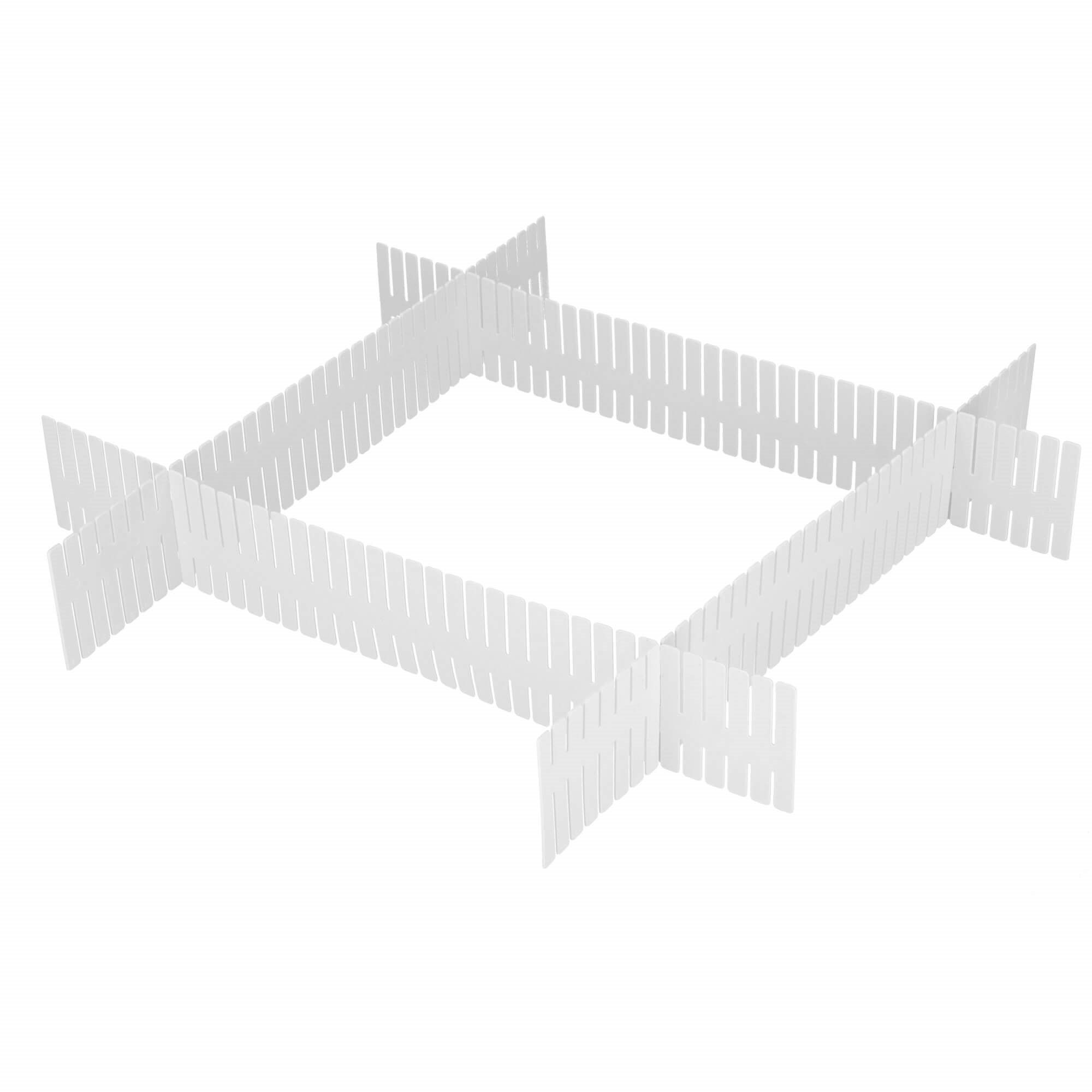 Основные функции: Материал: пластик (пластик) Белый цвет. Количество деталей в комплекте: 4 Применение: органайзер/перегородка ящика. Возможность корректировки размеров. Размеры: (один сепаратор) Длина: 46 см Высота: 7 см Толщина: 1,5 см.