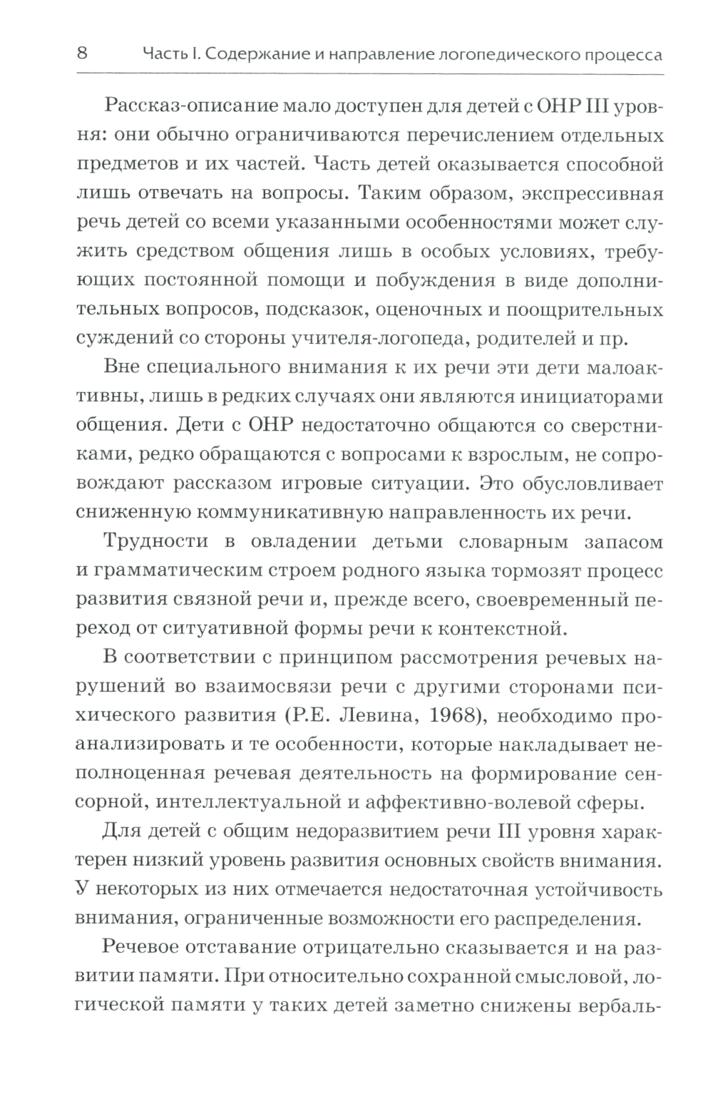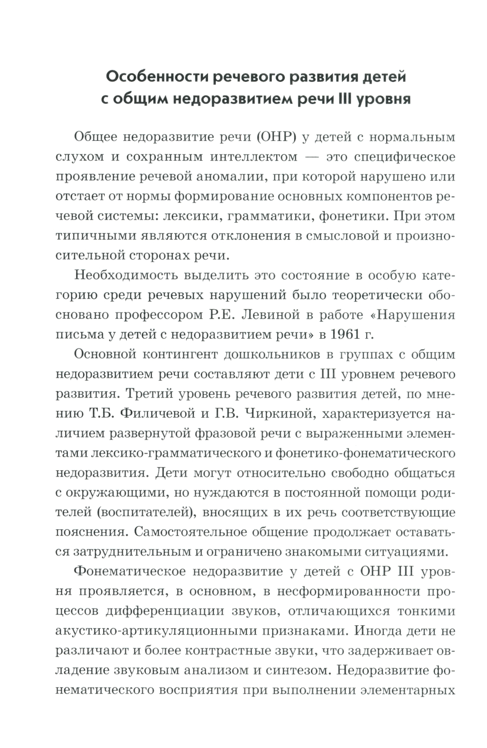 В книге собраны материалы, цель которых - помочь педагогу организовать работу по авторской программе «Комплексный подход к преодолению общего недоразвития речи у детей старшего дошкольного возраста». Кроме текста самой программы в пособии приведено описание особенностей развития детей с ОНР III уровня, рассказывается об организации взаимодействия учителя-логопеда с воспитателями и родителями детей. Также представлены материалы по обследованию речи детей 5-7 лет (примерная речевая карта и диагностические карты обследования). Пособие адресовано логопедам и воспитателям ДОУ.
