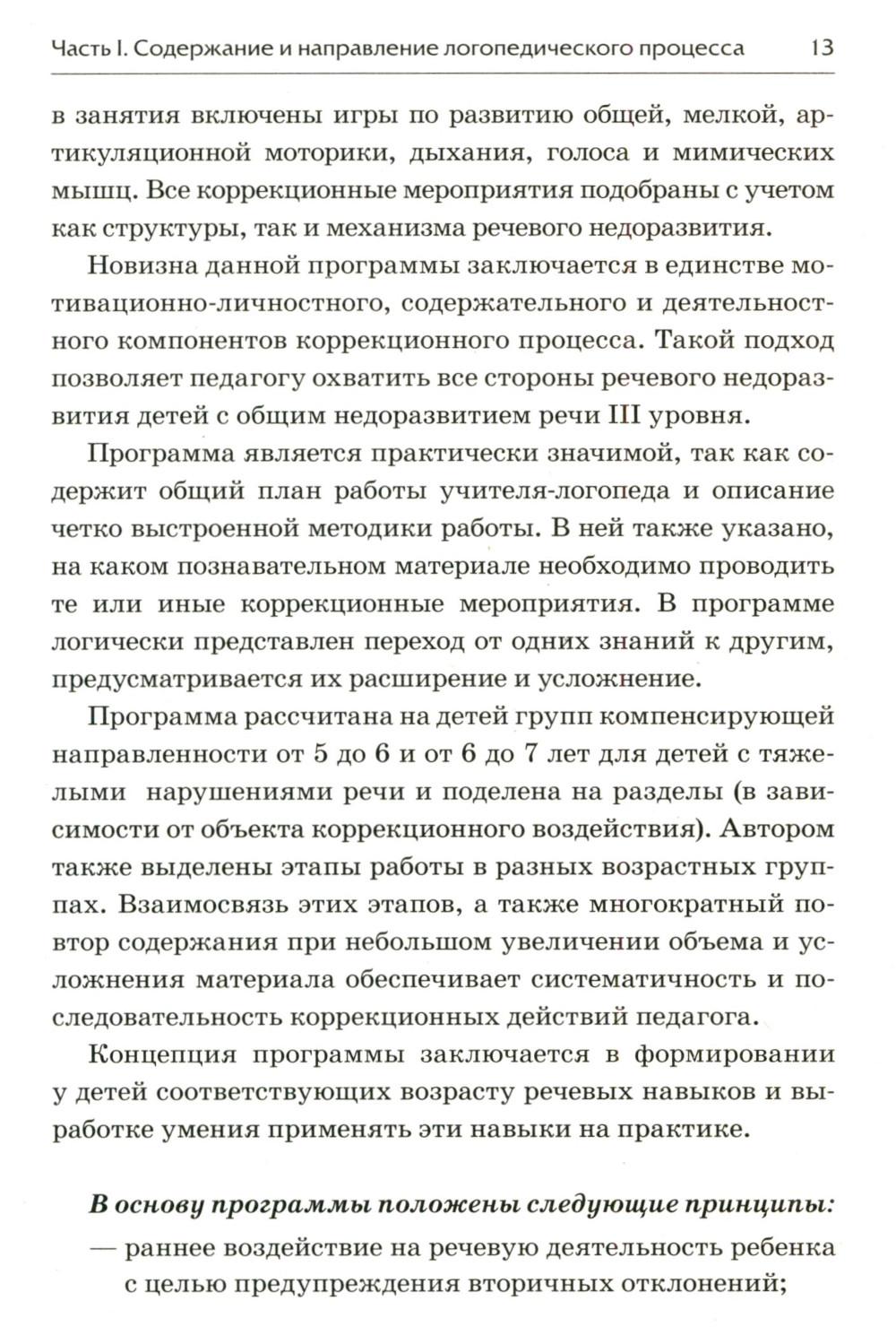 В книге собраны материалы, цель которых - помочь педагогу организовать работу по авторской программе «Комплексный подход к преодолению общего недоразвития речи у детей старшего дошкольного возраста». Кроме текста самой программы в пособии приведено описание особенностей развития детей с ОНР III уровня, рассказывается об организации взаимодействия учителя-логопеда с воспитателями и родителями детей. Также представлены материалы по обследованию речи детей 5-7 лет (примерная речевая карта и диагностические карты обследования). Пособие адресовано логопедам и воспитателям ДОУ.| Издательство | Гном |
