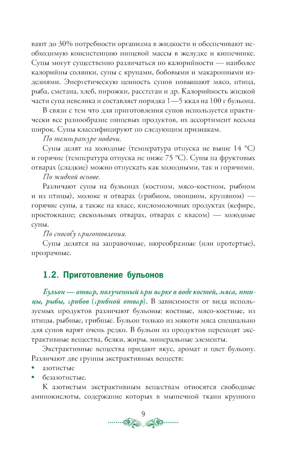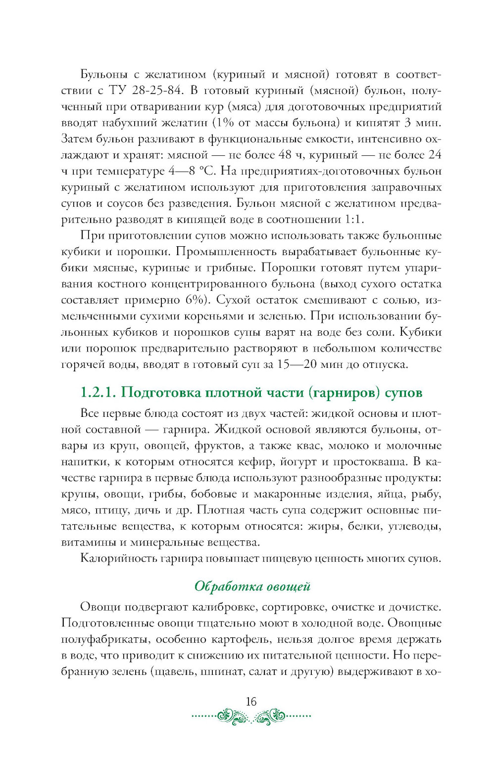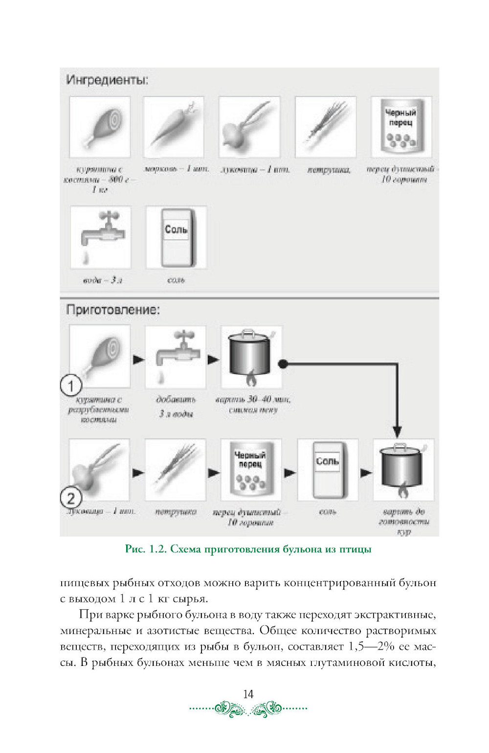 Приводятся основные сведения о технологии производства важнейших групп блюд и организации процесса их приготовления, оформления и отпуска, их роли в потребительских свойствах кулинарной продукции. Прослеживается взаимосвязь знаний в области технологии и товароведения пищевых продуктов с современными познаниями в области биохимии, технологии производства, санитарии, гигиены и физиологии питания. Раскрывается значение различных групп блюд в питании. Рассматриваются процессы, происходящие при тепловой обработке продуктов животного и растительного происхождения. Приводятся требования к качеству и хранению отдельных групп блюд. Соответствует ФГОС СПО последнего поколения. Для студентов СПО, а также работников предприятий общественного питания, предпринимателей и широкого круга читателей.| Издательство | КноРус |