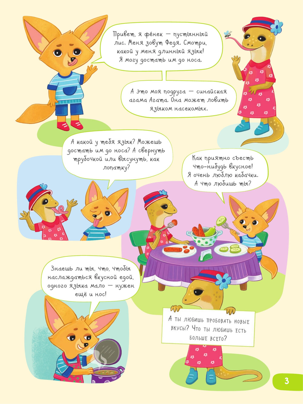 Как много вокруг интересного! Можно пробовать на вкус, ощущать, слушать, смотреть - всё это благодаря нашим органам чувств. Прочитав эту книгу, вы узнаете, как мы чувствуем разные вкусы: как устроен наш орган вкуса - язык; как мы понимаем, что еда острая, сладкая, теплая или холодая; что такое вкусовые рецепторы и как они помогают нам чувствовать разные вкусы. А также же сможете побывать в уникальном зоопарке, научной лаборатории и сами сможете провести эксперименты и выполнить интересные задания. Но и это ещё не всё! Если вы у вас будут книги «Органы чувств: вижу», «Органы чувств: ощущаю», «Органы чувств: слышу», вы сможете собрать большие пазлы органов чувств. В этом вам помогут преподаватели Школы развития «Маяк» и фeнек Федя со своей подругой синайской агамой Агатой.| Издательство | Просвещение |