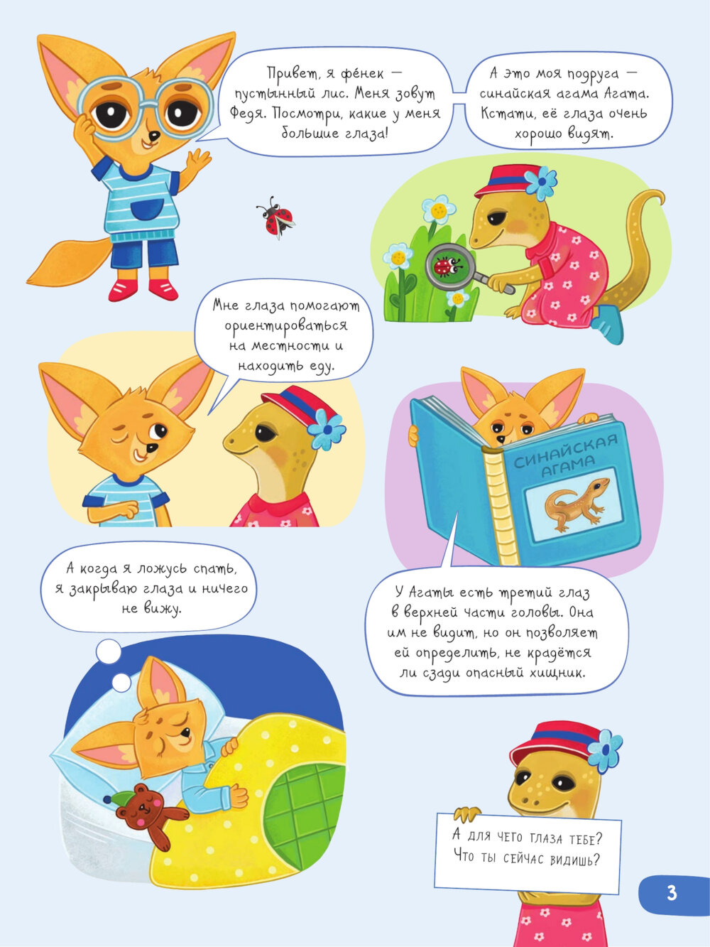 Как много вокруг интересного! Можно смотреть, слушать, пробовать на вкус, ощущать - всё это благодаря нашим органам чувств. Прочитав эту книгу, вы узнаете, как мы видим: как устроен наш орган зрения - глаз; что такое свет и цвет; какой путь преодолевает луч света, чтобы стать картинкой в нашем мозге. А также же сможете побывать в уникальном зоопарке, научной лаборатории и сами сможете провести эксперименты и выполнить интересные задания. Но и это ещё не всё! Если вы у вас будут книги «Органы чувств: слышу», «Органы чувств: ощущаю», «Органы чувств: пробую», вы сможете собрать большие пазлы органов чувств. В этом вам помогут преподаватели Школы развития «Маяк» и фeнек Федя со своей подругой синайской агамой Агатой.| Издательство | Просвещение |