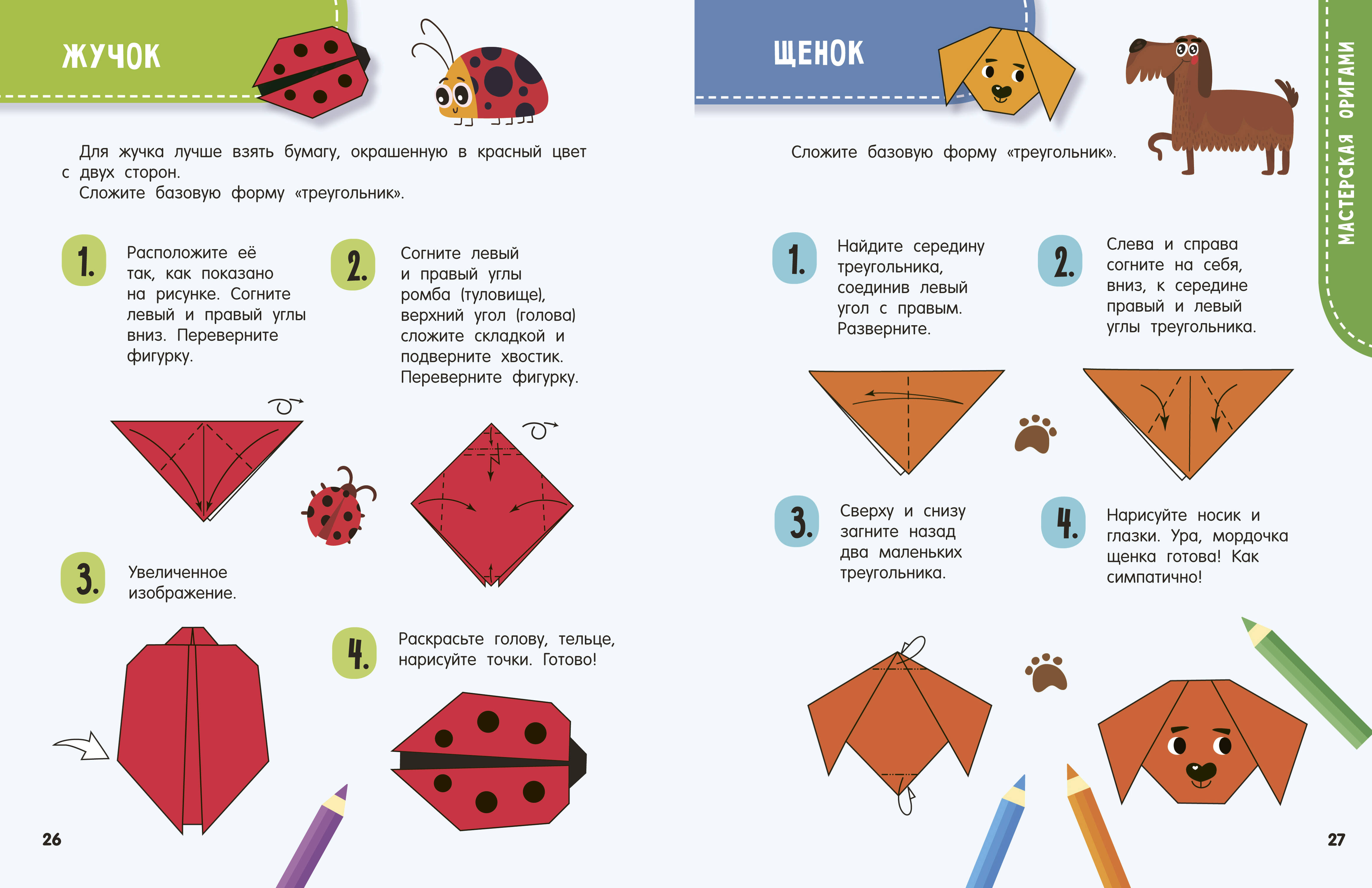 Как помочь малышу научиться складывать оригами? Обратитесь к простому самоучителю «Оригами. Животные». В нём вы найдёте инструкцию по сборке поделки из бумаги с иллюстрированием каждого шага. Благодаря несложному и наглядному объяснению удовольствие от процесса получат и ребёнок, и взрослые! • 18 авторских мастер-классов - щенок, кит, пеликан, журавлик и многое другое! • 64 плотных страницы с красочными иллюстрациями с подробными условными обозначениями для обучения искусству оригами. • Развитие геометрического мышления, ловкости рук, воображения, произвольного внимания и усидчивости. • Любая поделка станет прекрасным подарком для родных и друзей.| Издательство | Издательство "АСТ" |