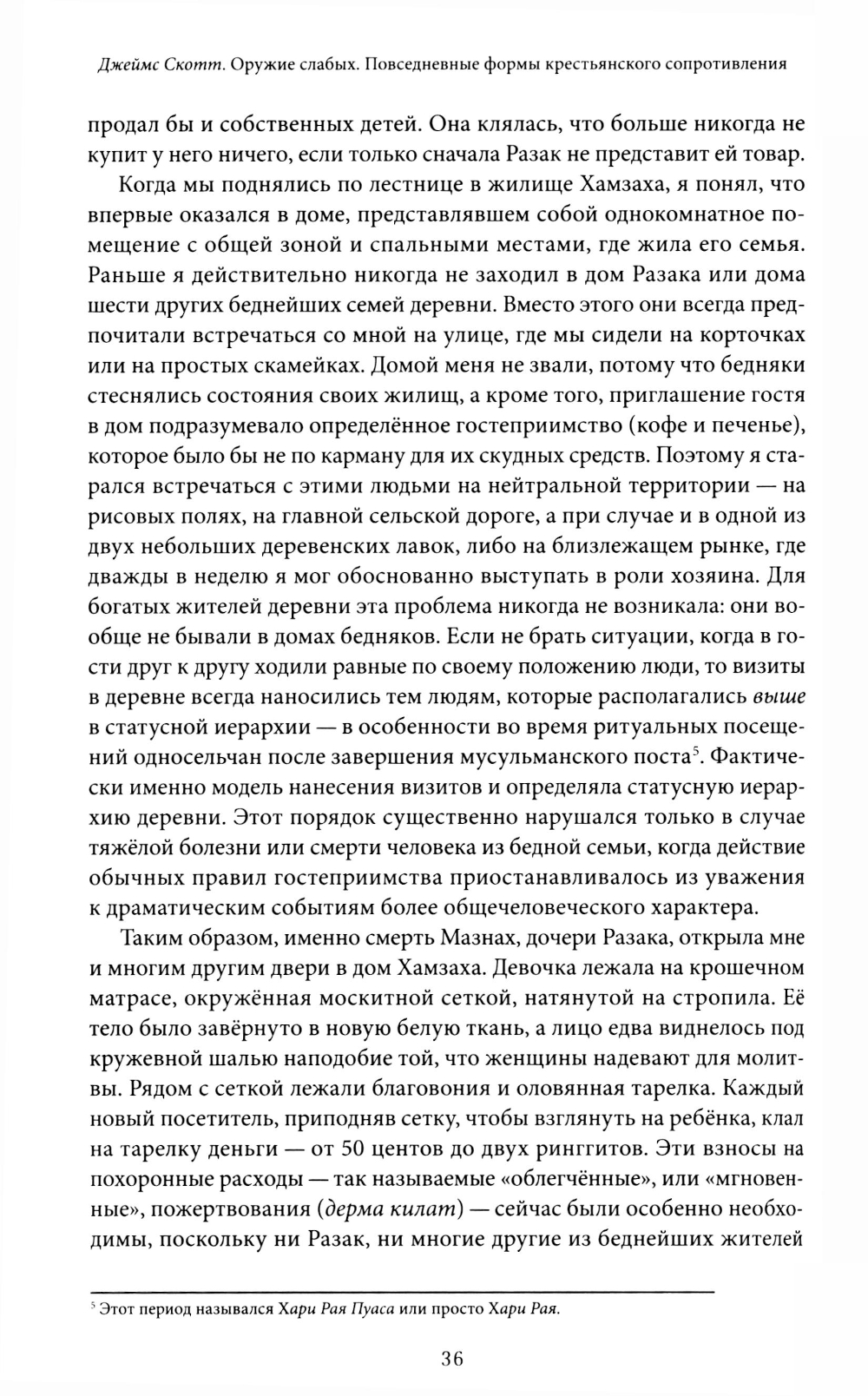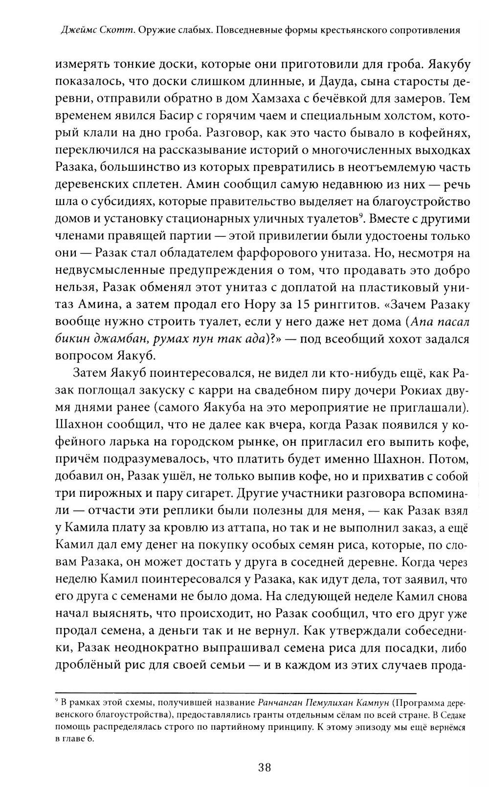 «Оружие слабых» - одна из важнейших работ американского политолога и антрополога Джеймса Скотта (1936-2024), в которой на примере небольшой деревни в Малайзии, где автор проводил полевые исследования в конце 1970-х годов, показана незавидная судьба крестьянского класса и, шире, всего аграрного уклада жизни при столкновении с «государством развития». Блестящий аналитик и бытописатель, Скотт увлекает читателя с первых же страниц своей книги, свободно переходя от зарисовок деревенской жизни к детальному экономическому анализу и далее к магистральной теме своего научного творчества - как и почему люди подчиняются существующему социальному порядку?| Издательство | Изд-е книжного магазина "Циолковский" |