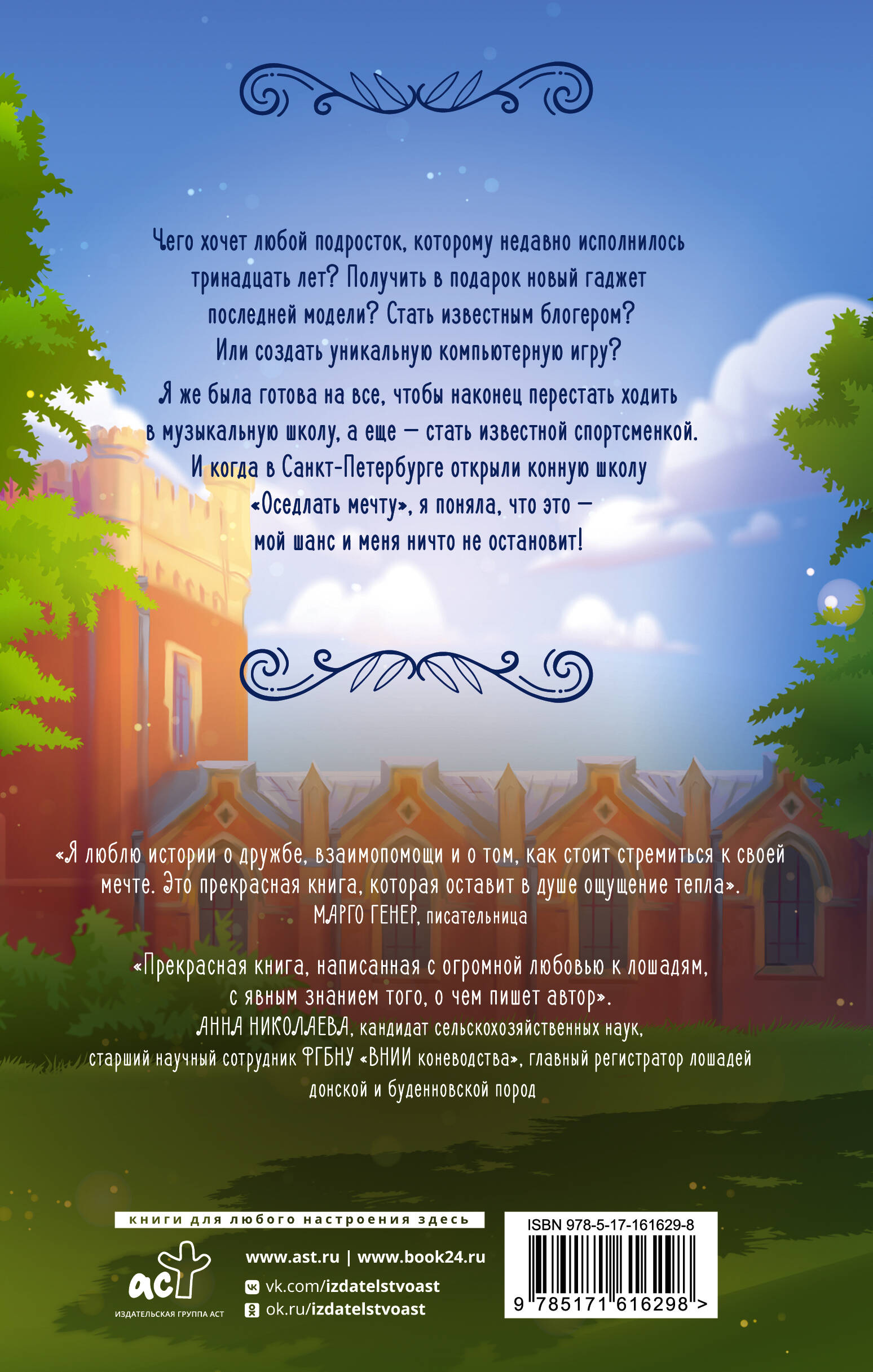 - Вдохновляющая книга для детей и подростков. Девочка мечтает поступить в элитную школу в Петербурге и заниматься верховой ездой. - Понравится поклонникам романа Екатерины Неволиной «Вольный ветер». - Книга не перегружена описаниями, но наполнена живым, образным языком. Она будет и полезна, и интересна любому школьнику. Оле недавно исполнилось 13 лет, и она уже знает, чем хочет заниматься в жизни. Мама настаивает на том, чтобы девочка окончила музыкальную школу, но Олю тянет к лошадям. Счастливый случай предоставляет Оле шанс поступить в конную школу в Петербурге. Сможет ли девочка осуществить мечту и не поссориться с родителями?| Издательство | Издательство "АСТ" |